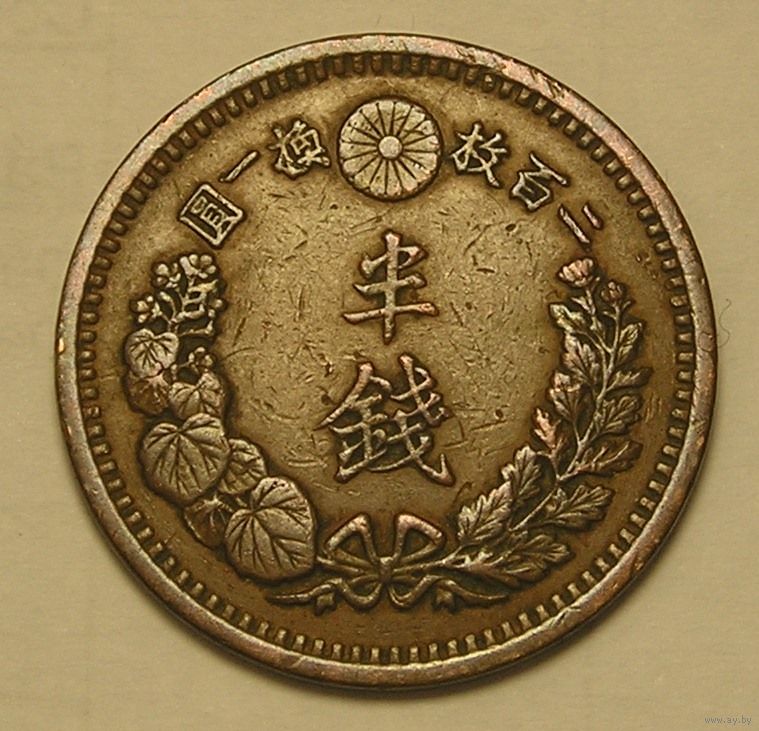 Япония, 1/2 Сена 1881, V-чешуйки, редкий год, Сохран !