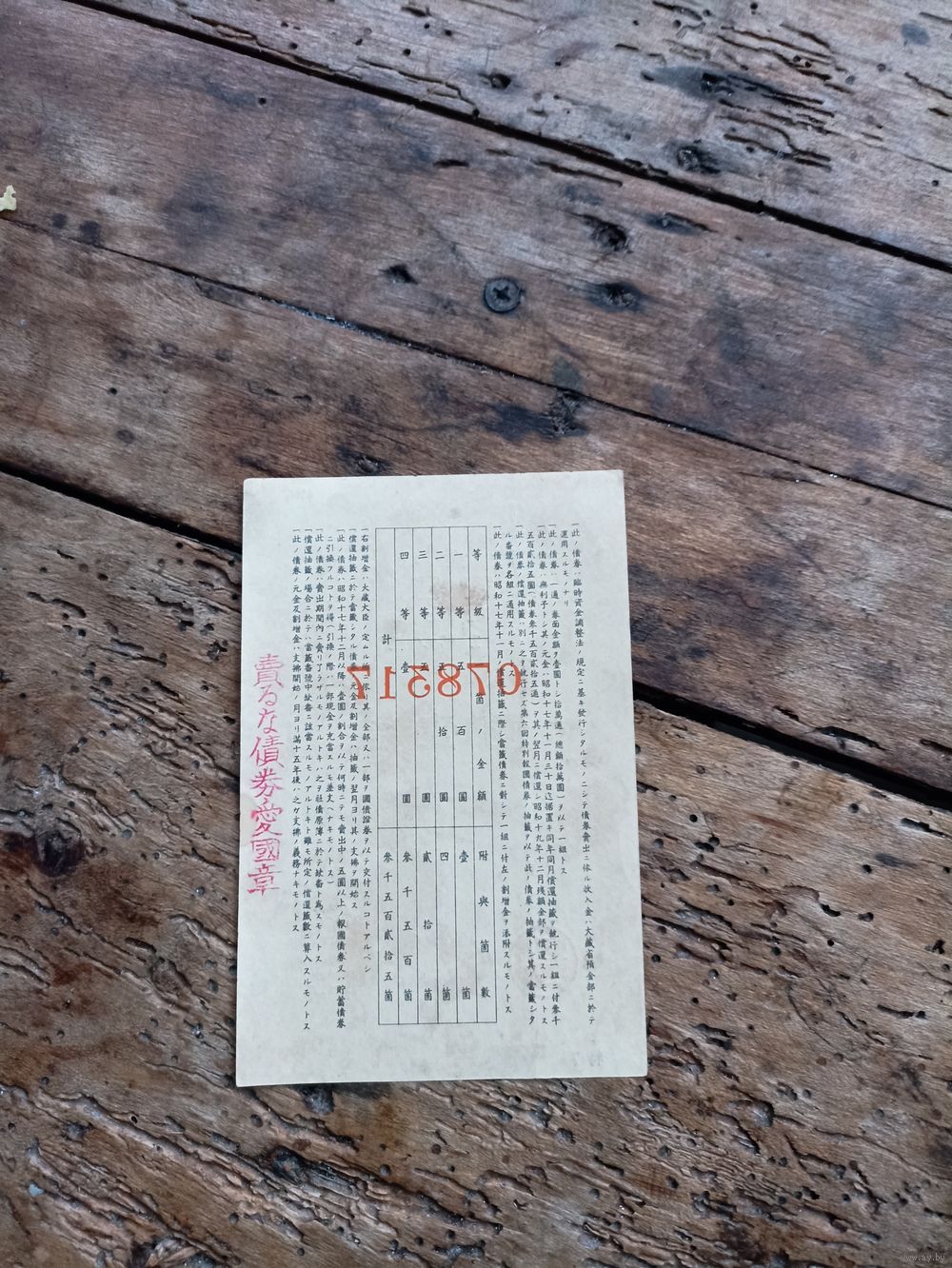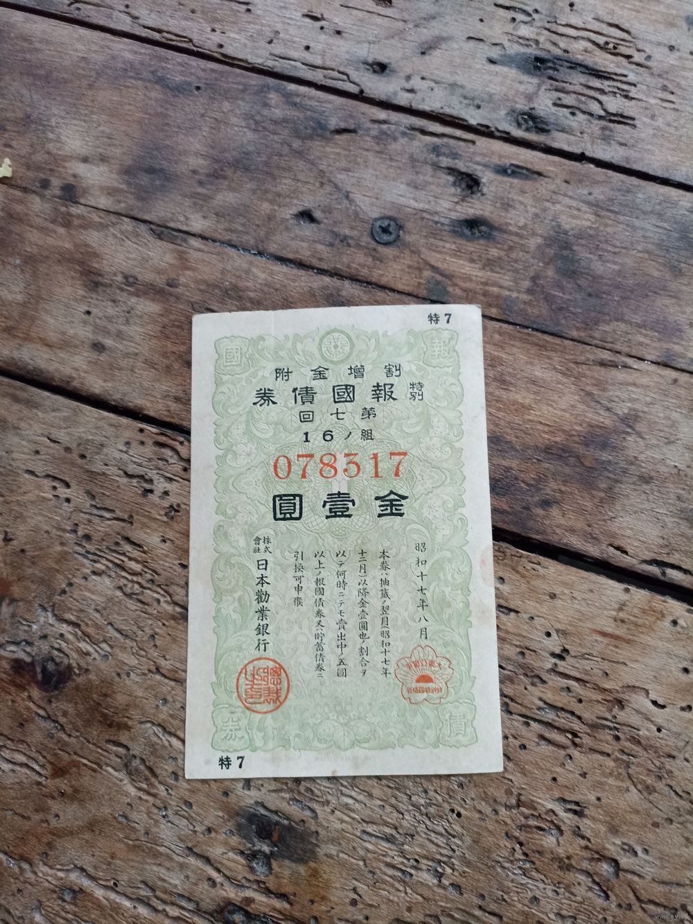 Япония 1 йена 1943год( облигация 078317)