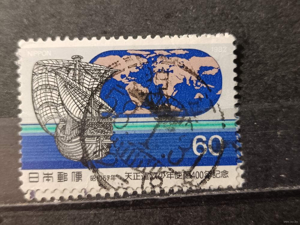 Япония, 1982. Парусник на фоне карты