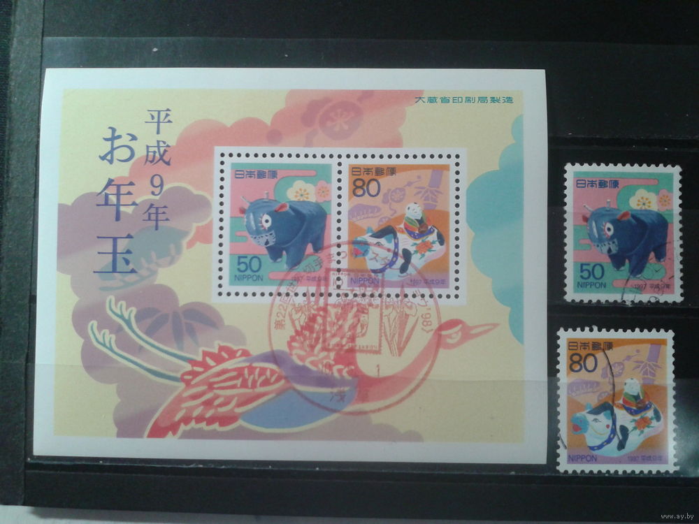 Япония, 1996. Год Быка, полная серия с блоком. Mi-3,9 евро гаш.
