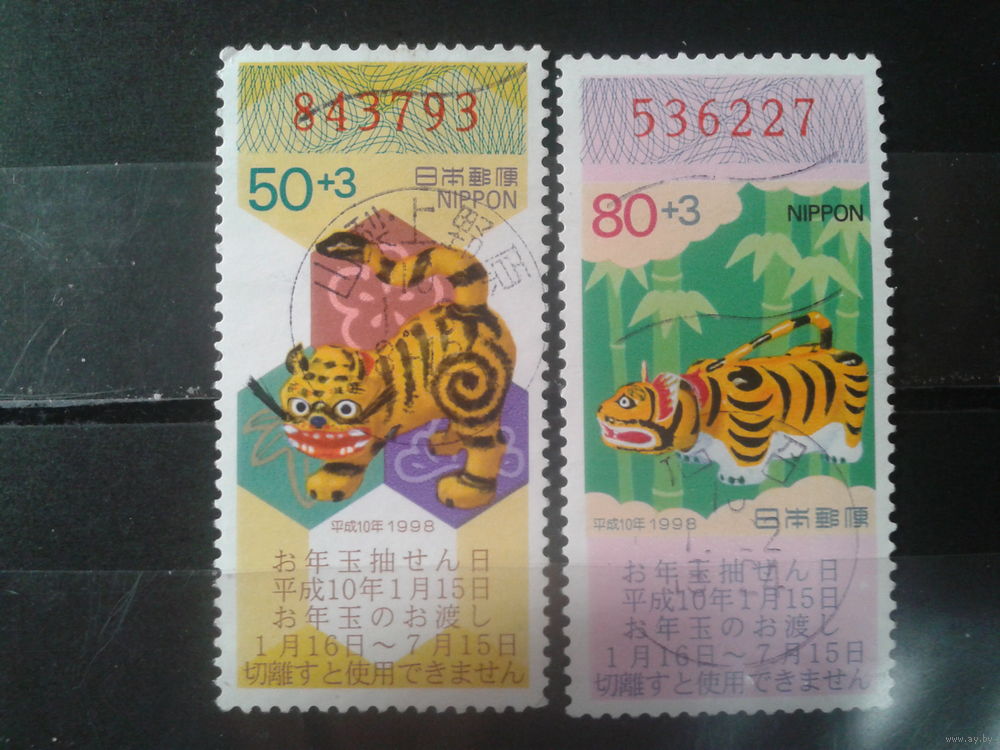 Япония, 1997. Год Тигра. Новогодняя лотерея, полная серия.