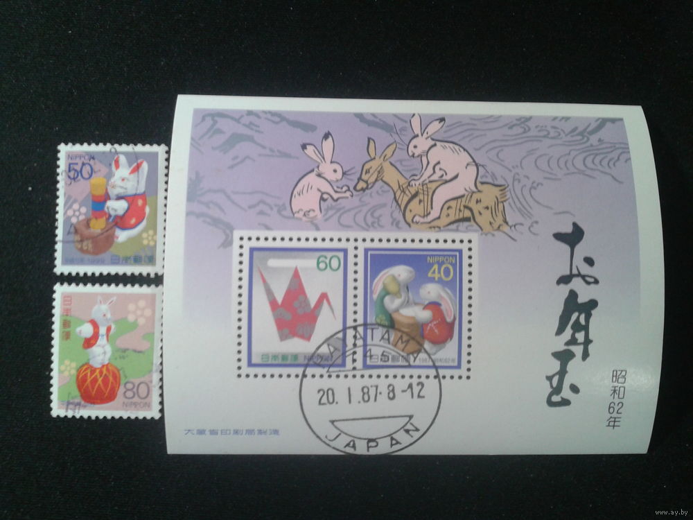Япония, 1998. Год Кролика. Полная серия с блоком. Mi-4,2 евро гаш.