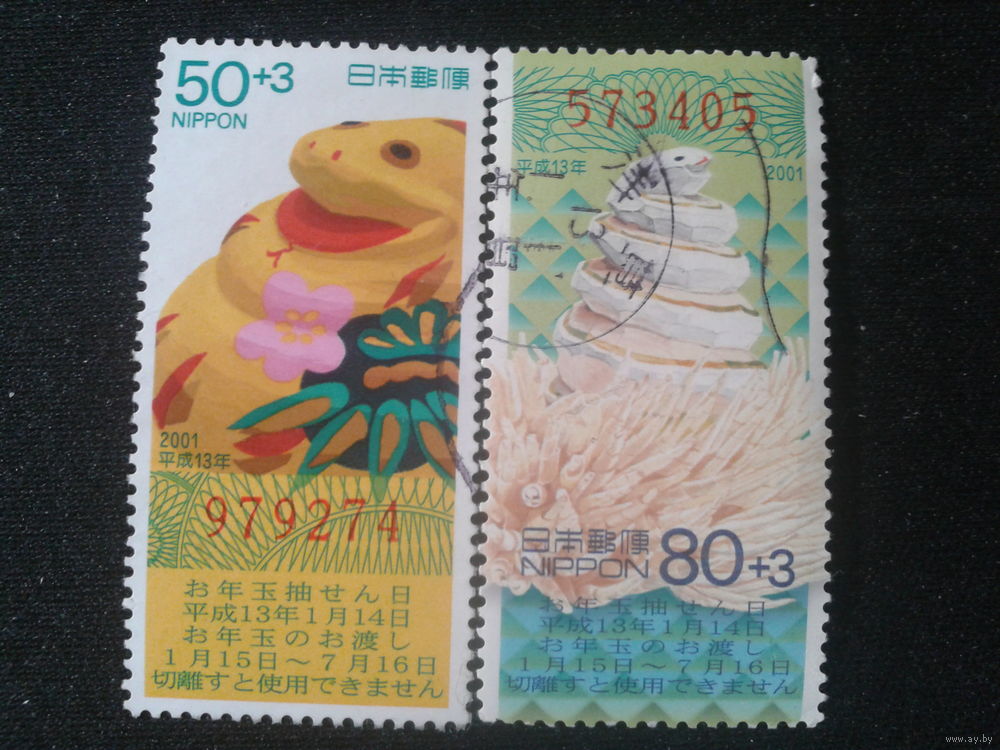 Япония, 2000. Год Змеи. Новогодняя лотерея, полная серия. Mi-3,2 евро гаш.