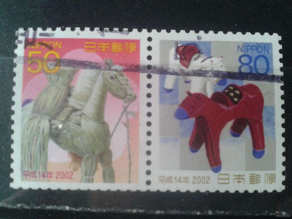 Япония, 2001. Год Лошади, сцепка из блока. Mi-3,5 еввро гаш.