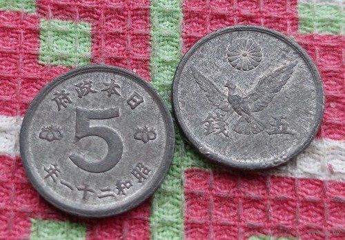 Япония 5 сен 1945-1946 гг., UNC. Голубь несущий ветвь - символ Святого Духа, Христианство.