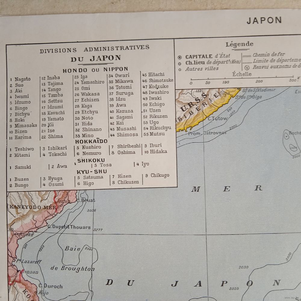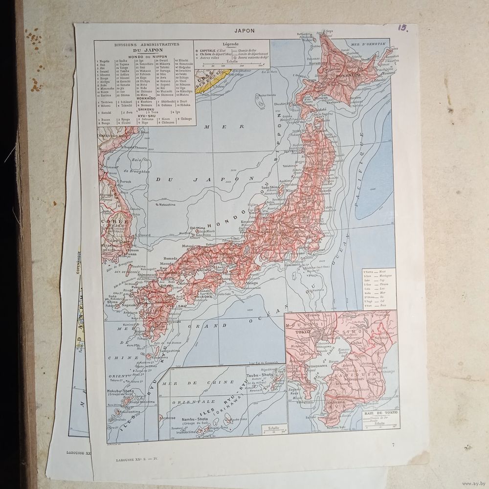 ЯПОНИЯ. Карта. Франция нач.20века 30х24см. РАСПРОДАЖА КОЛЛЕКЦИИ.
