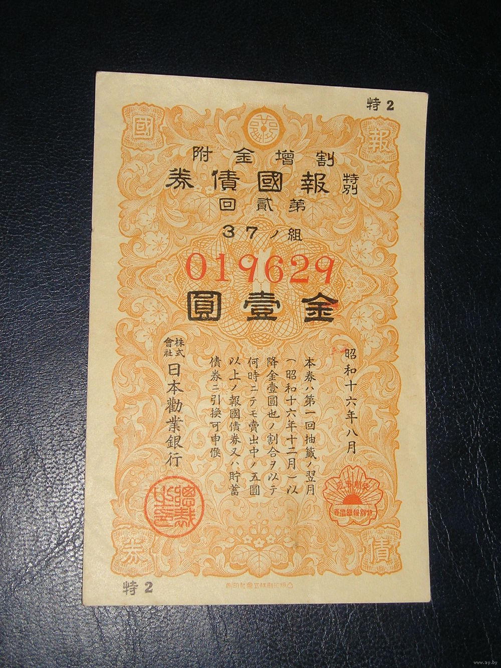Япония, Военная облигация 1 Иена 1941