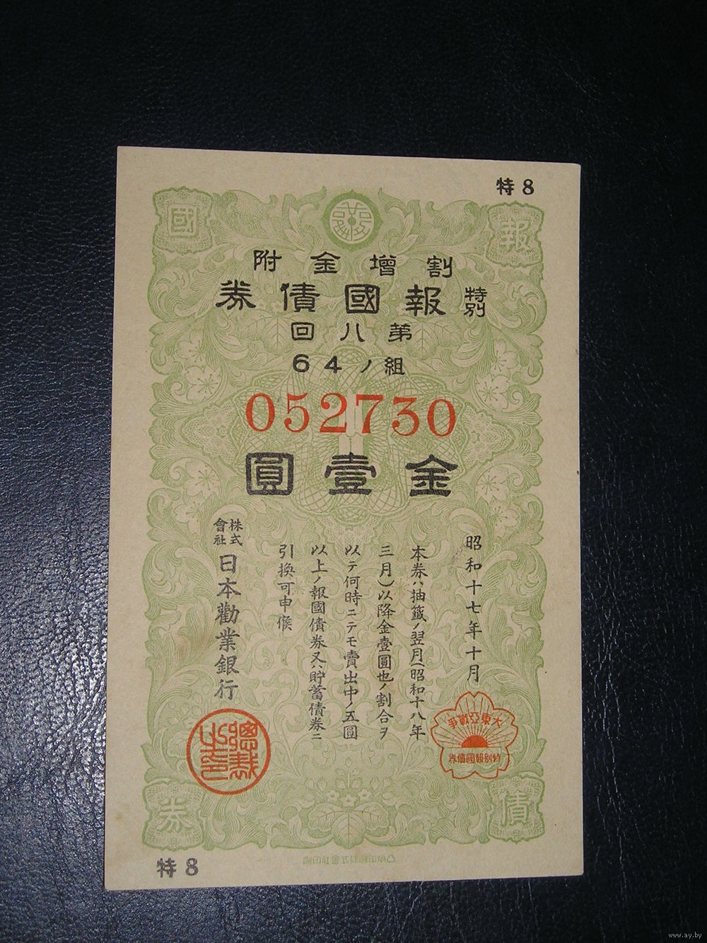 Япония, Военная облигация 1 Иена 1942