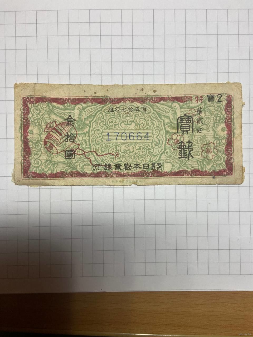 Лотерейный билет "Знак сокровищ". Слева расположено изображение традиционного японского молотка удачи "Утидэ-но-кодзути".