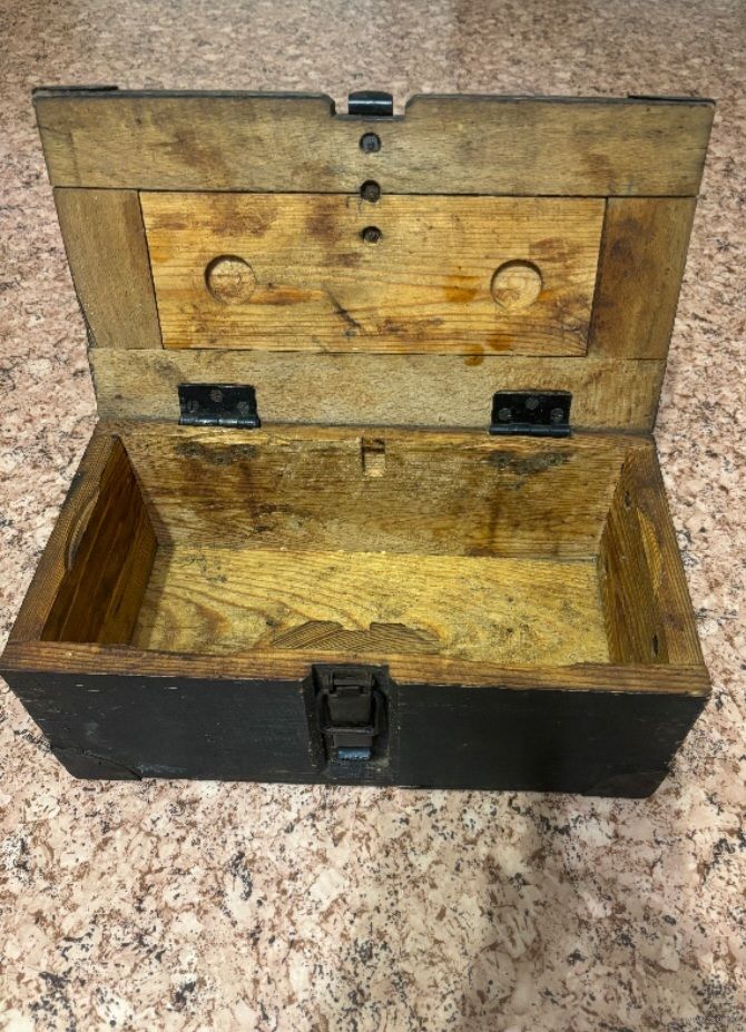 Отличный,крепкий ящик на две гильзы к 150мм. немецкому тяжёлому пехотному орудию s.J.G.33. Всё рабочее,родная краска,клеймо на 42-й год
