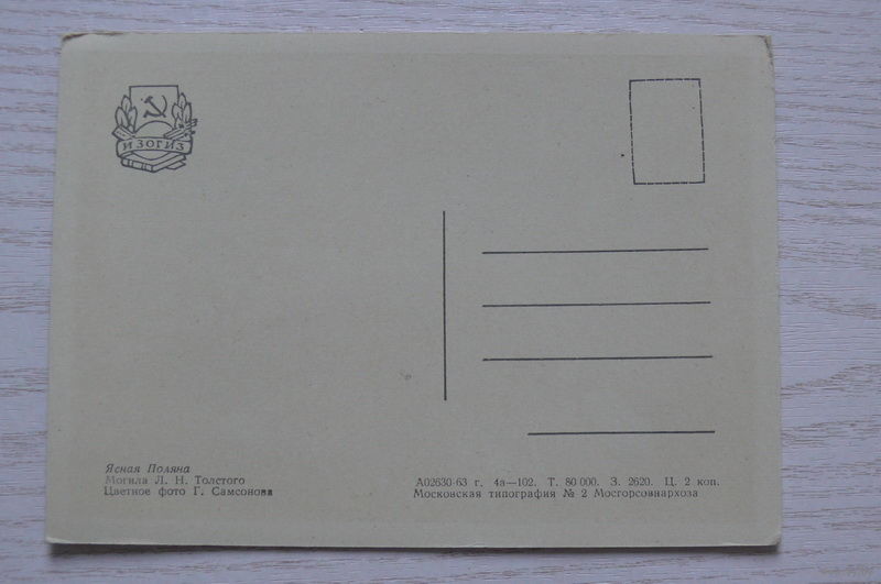 Ясная Поляна; 1963; чистая.