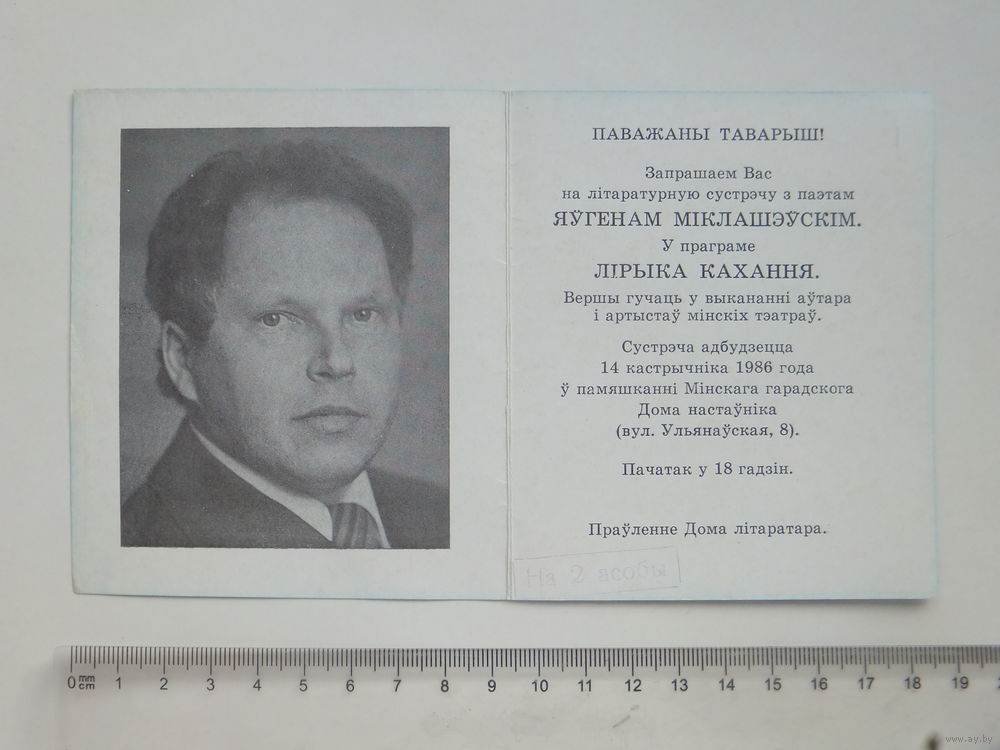 Яўген Міклашэўскі запрашэнне Мiнск 1986