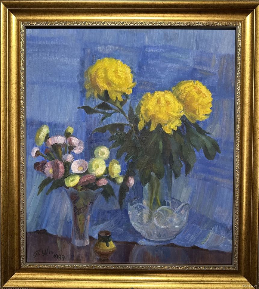 Явич П.М. (ученик Пэна Ю.М.) "Хризантемы", 1999 год. Холст, масло. Размер 66,5х60 см.