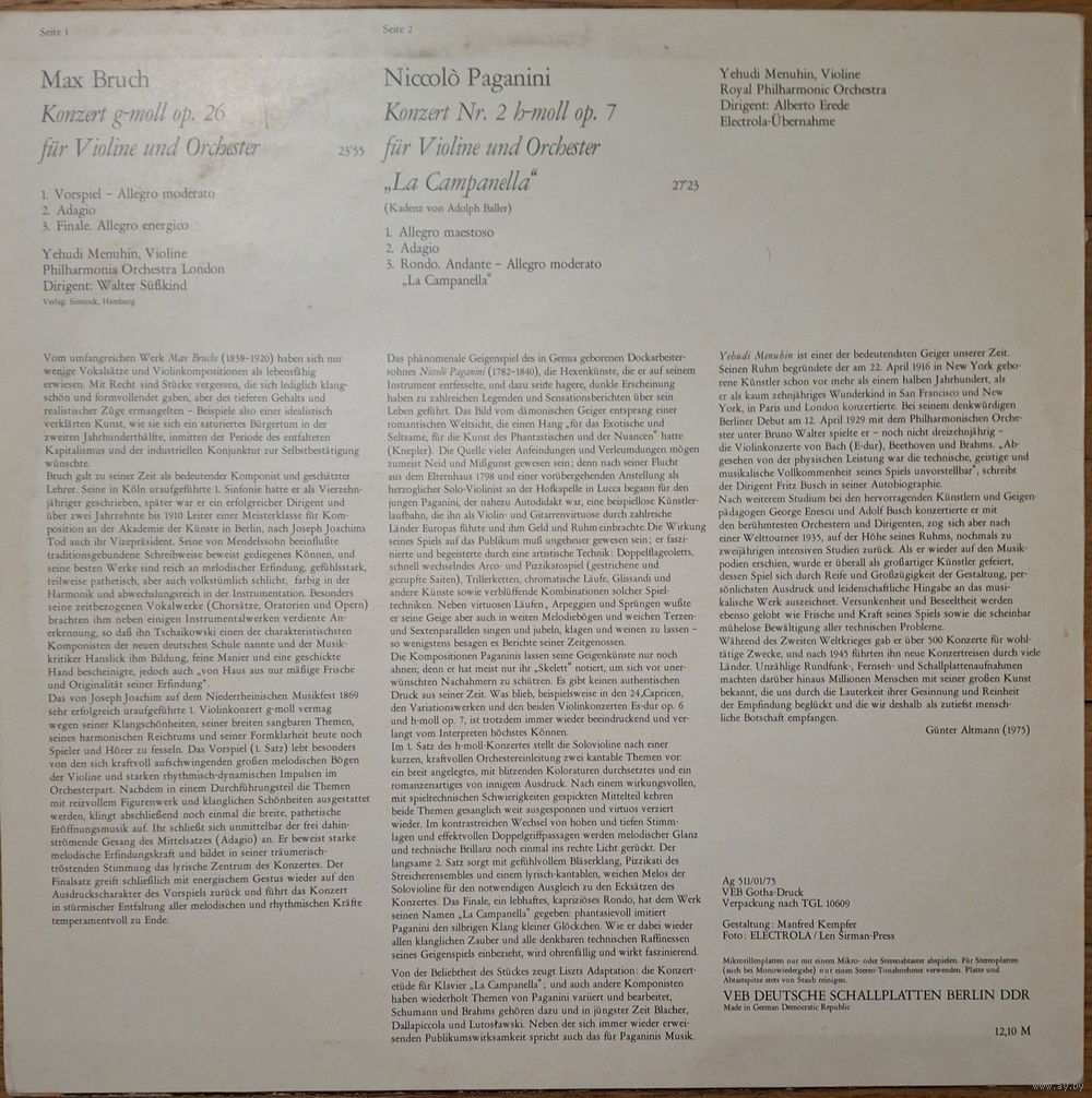 Yehudi Menuhin, Max Bruch / Niccolo Paganini – Violinkonzert G-moll Op. 26 / Violinkonzert Nr. 2 H-moll "La Campanella"