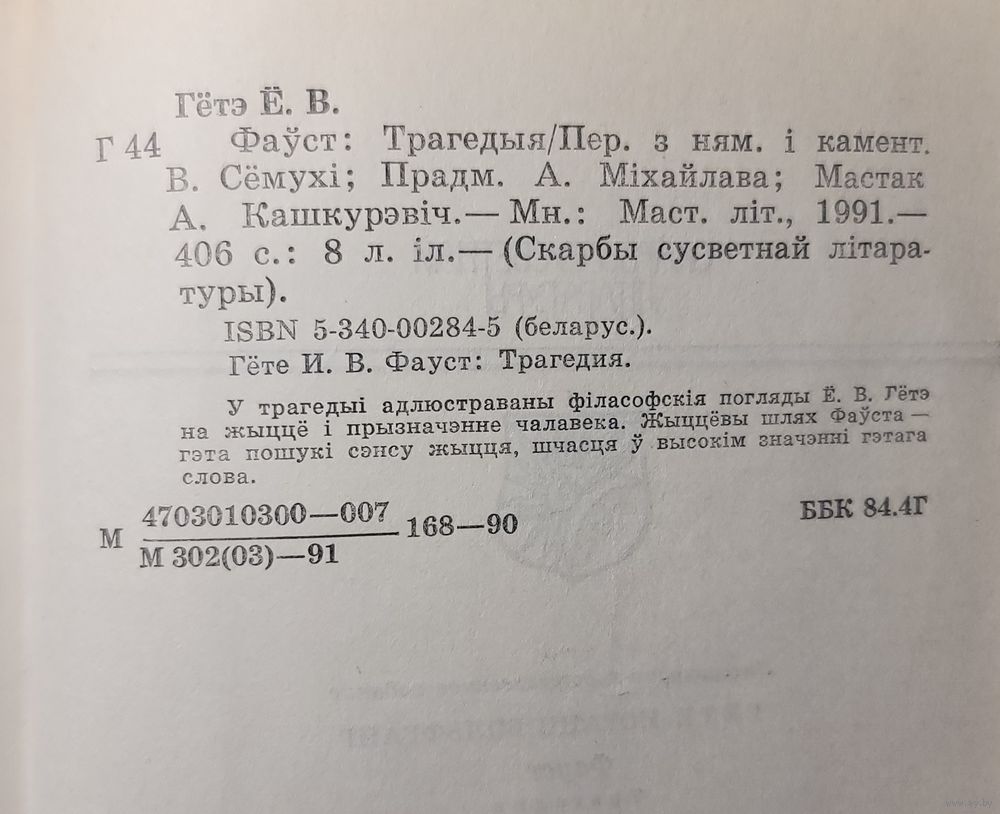 Ёган Вольфганг Гётэ Фаўст .... трохі пашкоджана вокладка. глядзіце фота