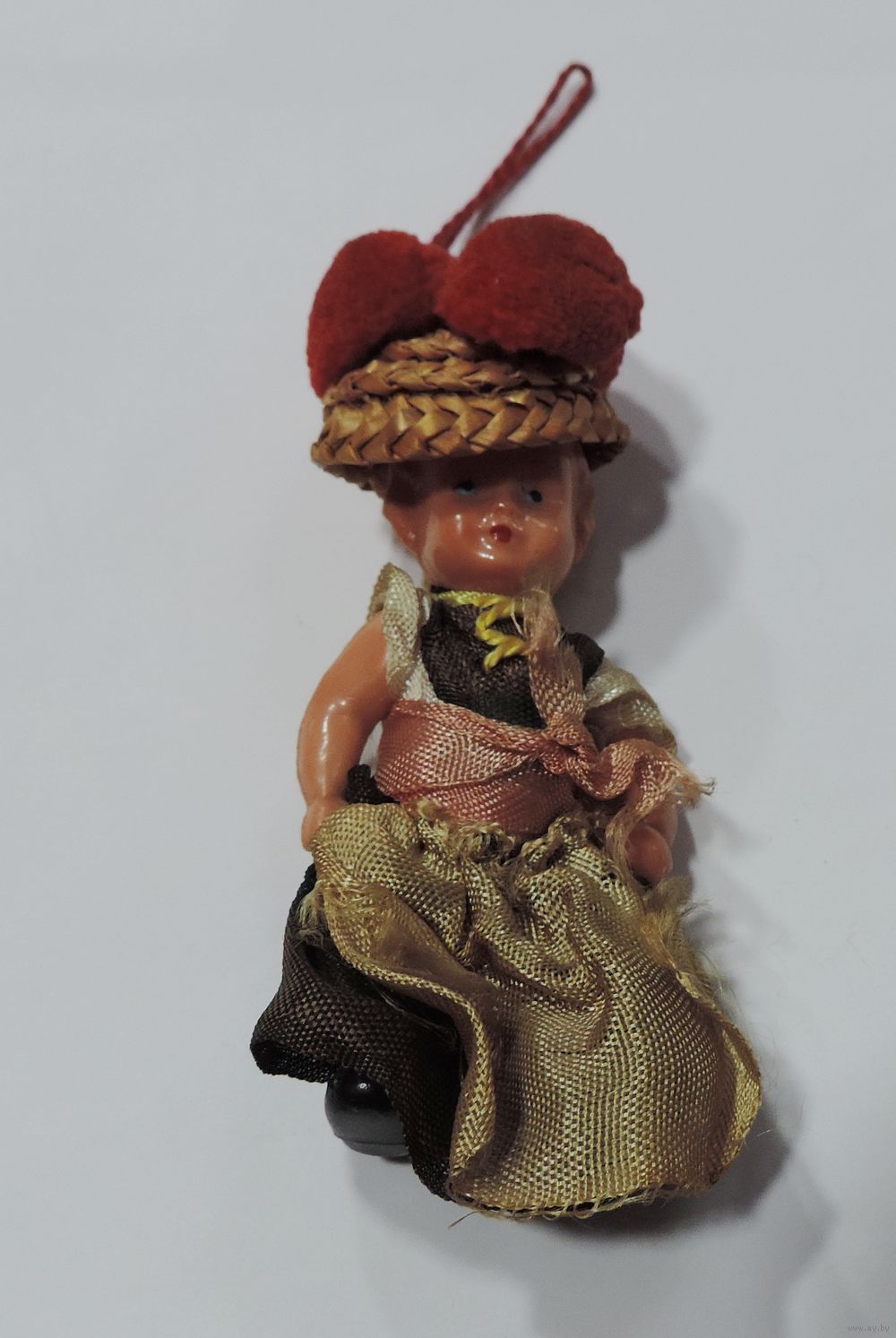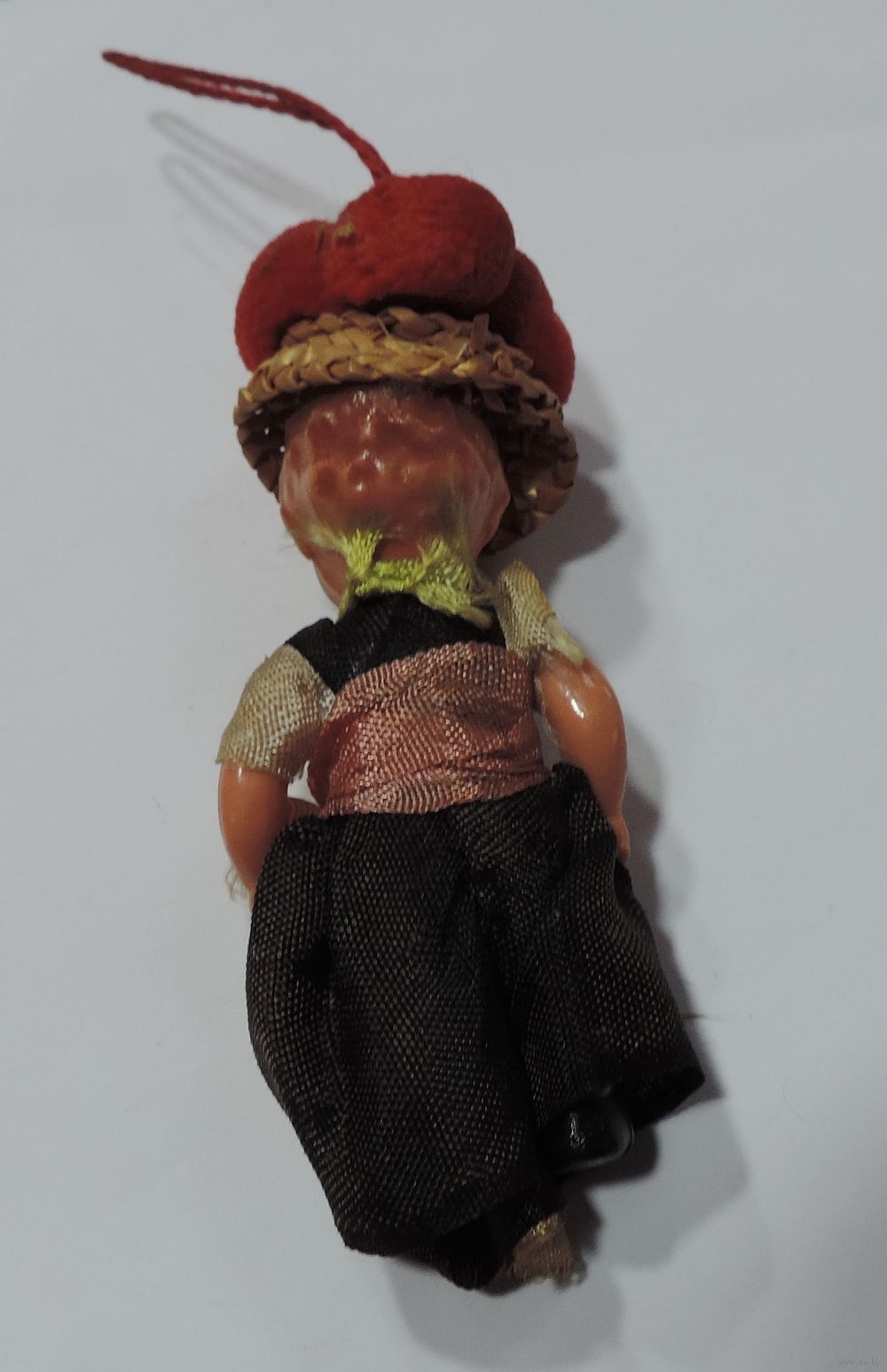 Ёлочная игрушка "Девушка в шляпе" 60-е годы Европа. Длина 9 см. Пластик.