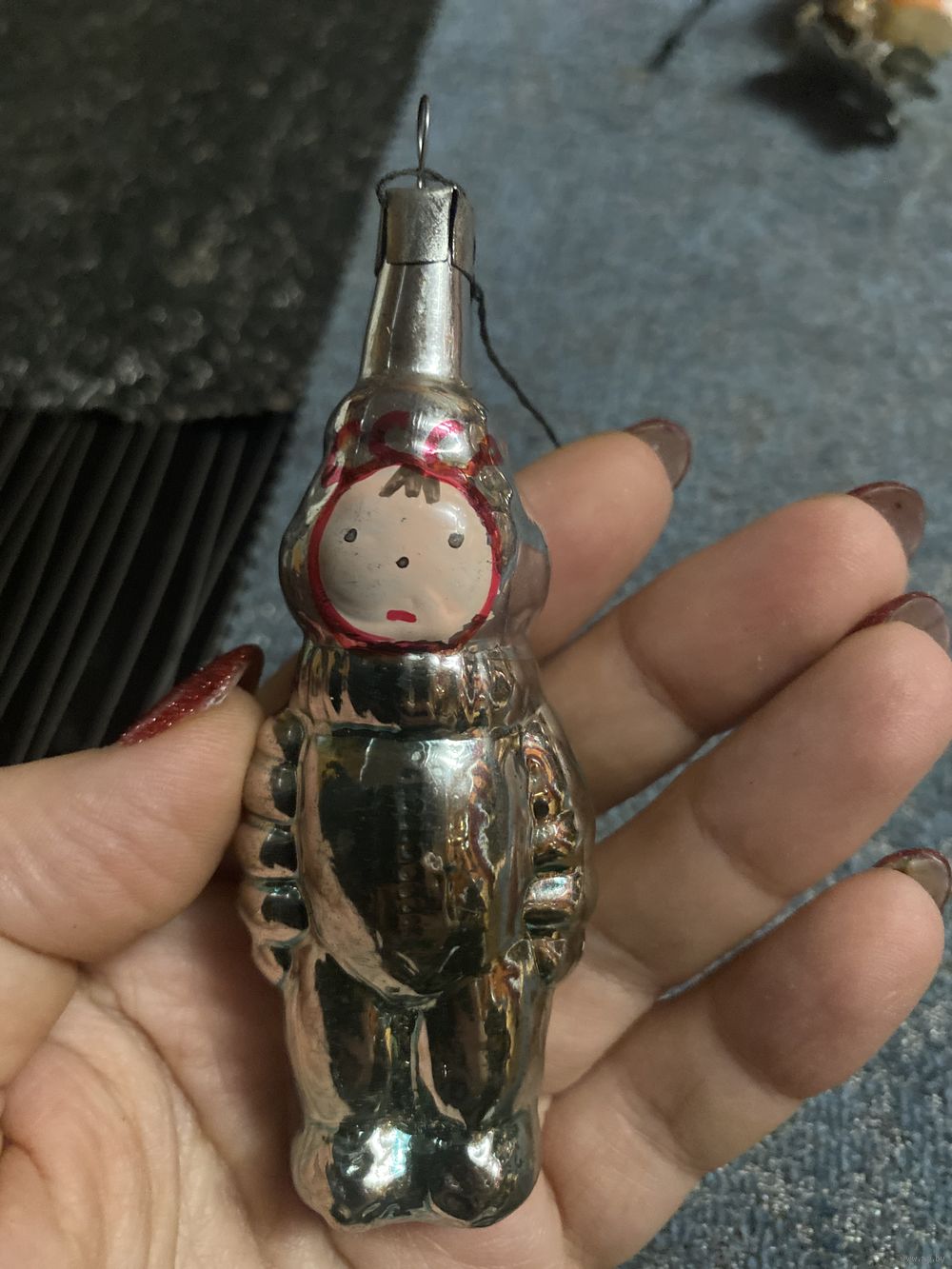 ёлочная игрушка космонавт окрас отличный потертости нет предварительно пишите уточняйте о наличии так как выставляются на разных площадках качество игрушки видно на фото