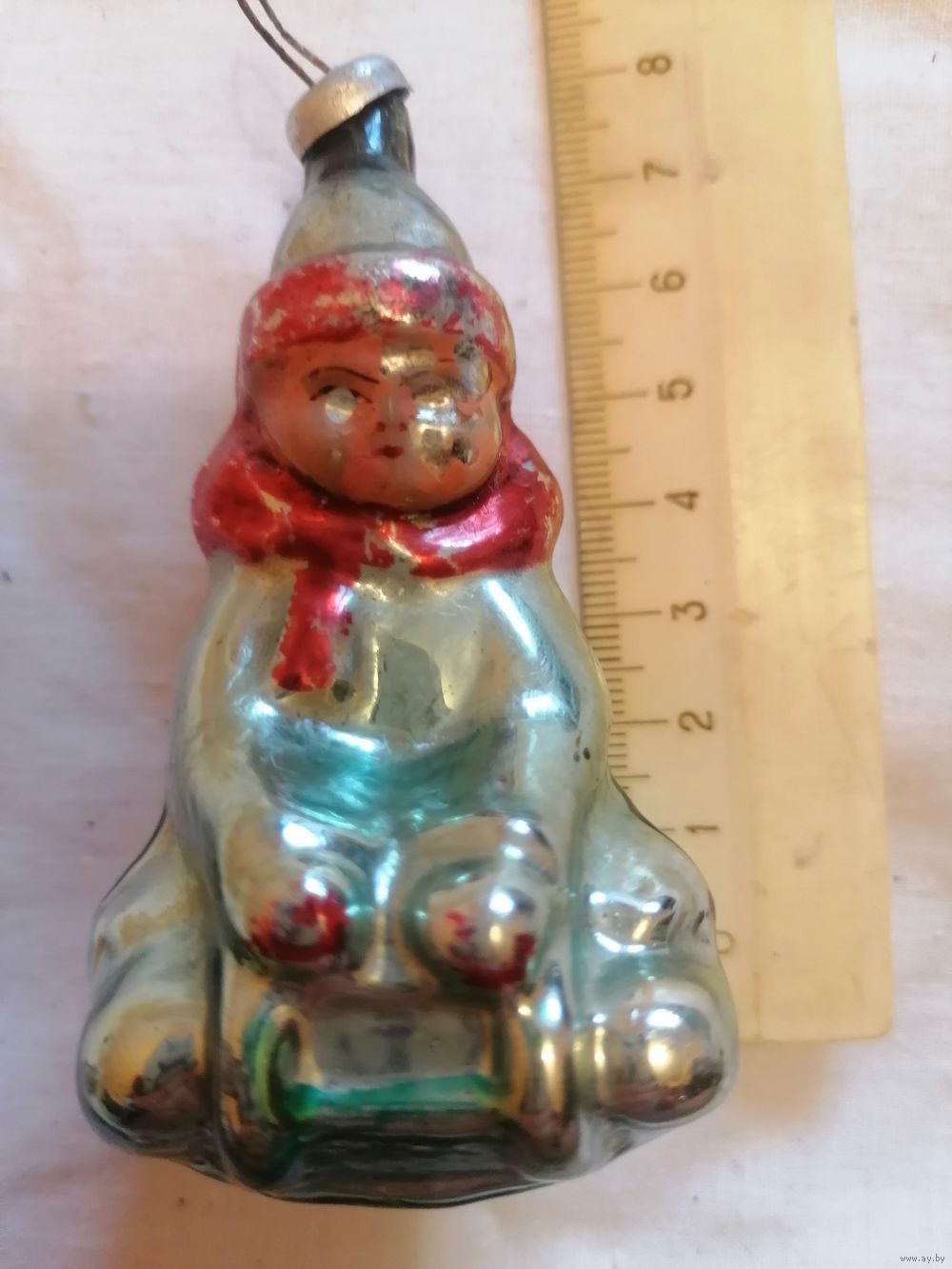 Ёлочная игрушка МАЛЬЧИК НА САНЯХ СССР 0049