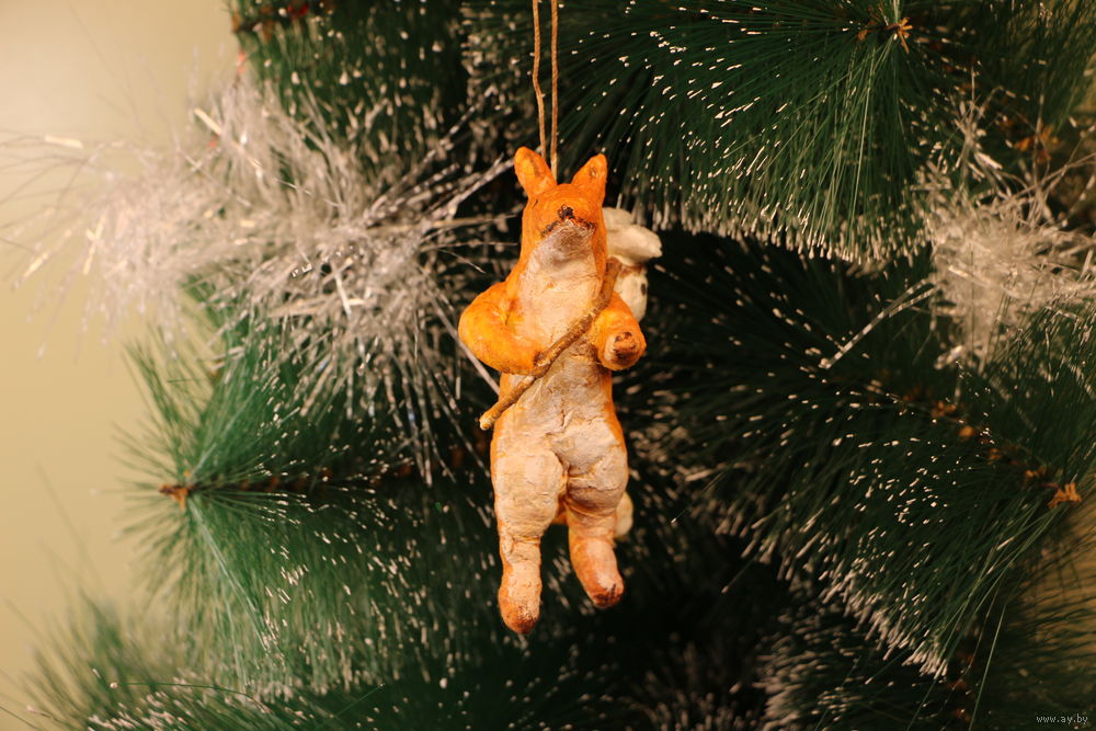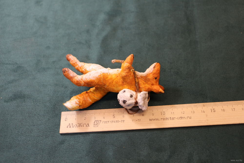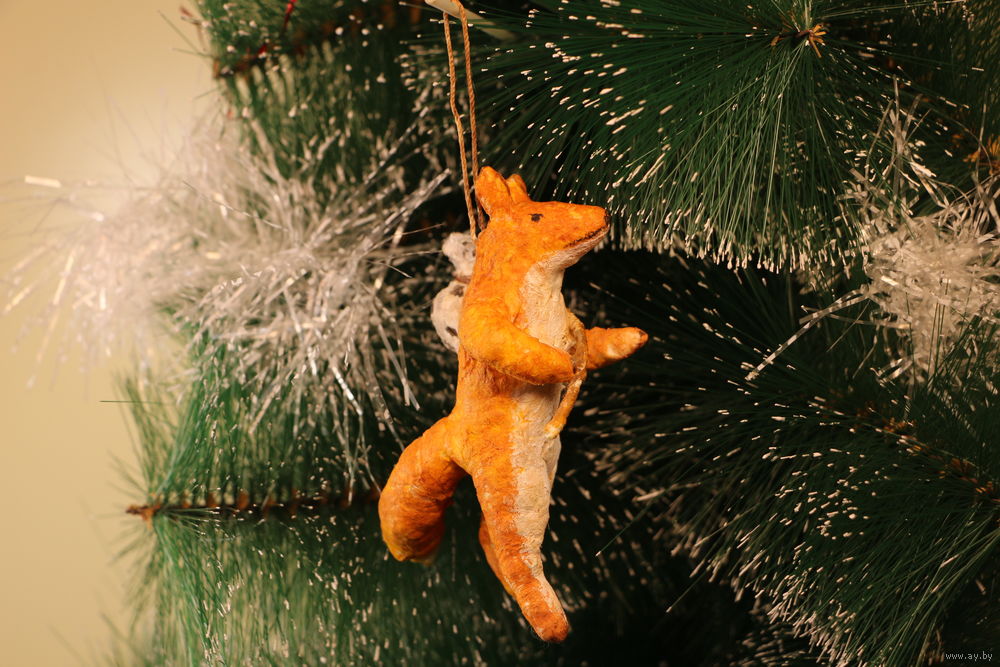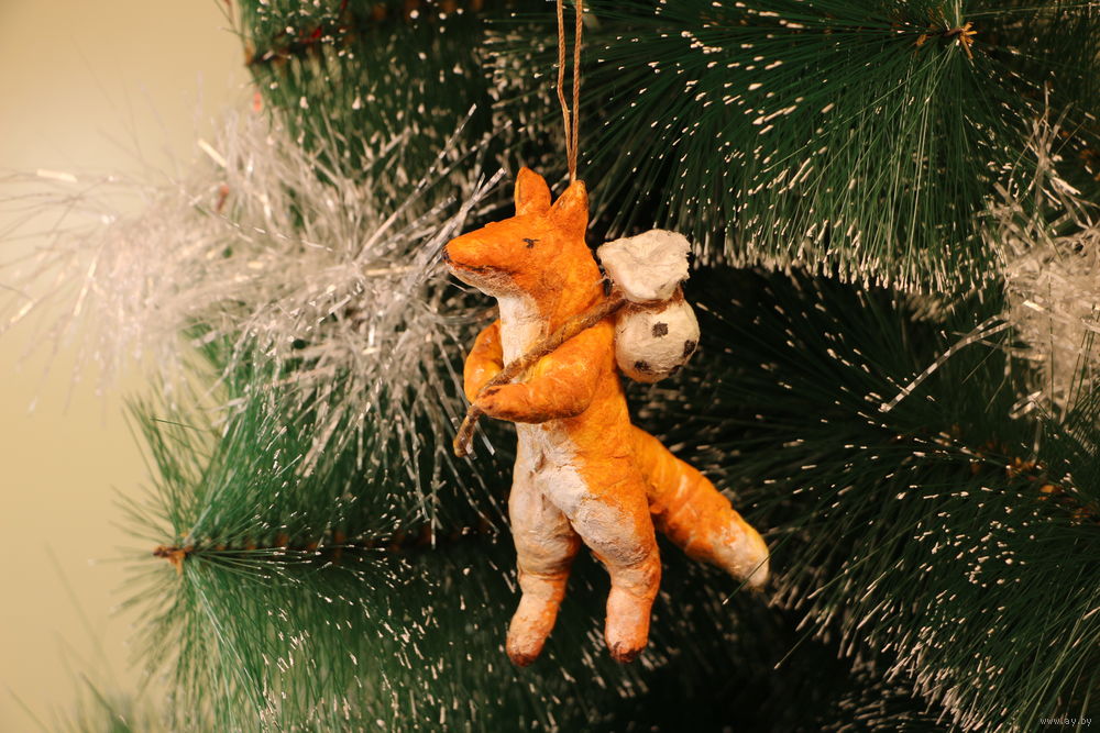 Ёлочная игрушка папье-маше, "Лиса с котомкой".