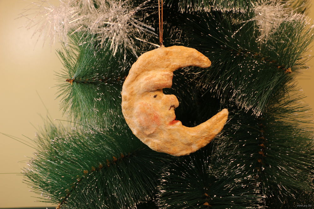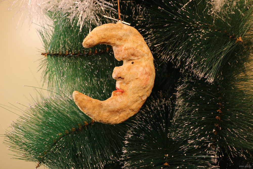 Ёлочная игрушка папье-маше, "Месяц".
