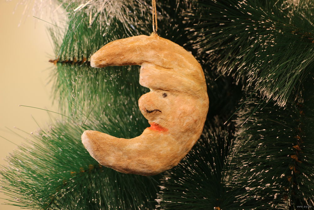 Ёлочная игрушка папье-маше, "Месяц".