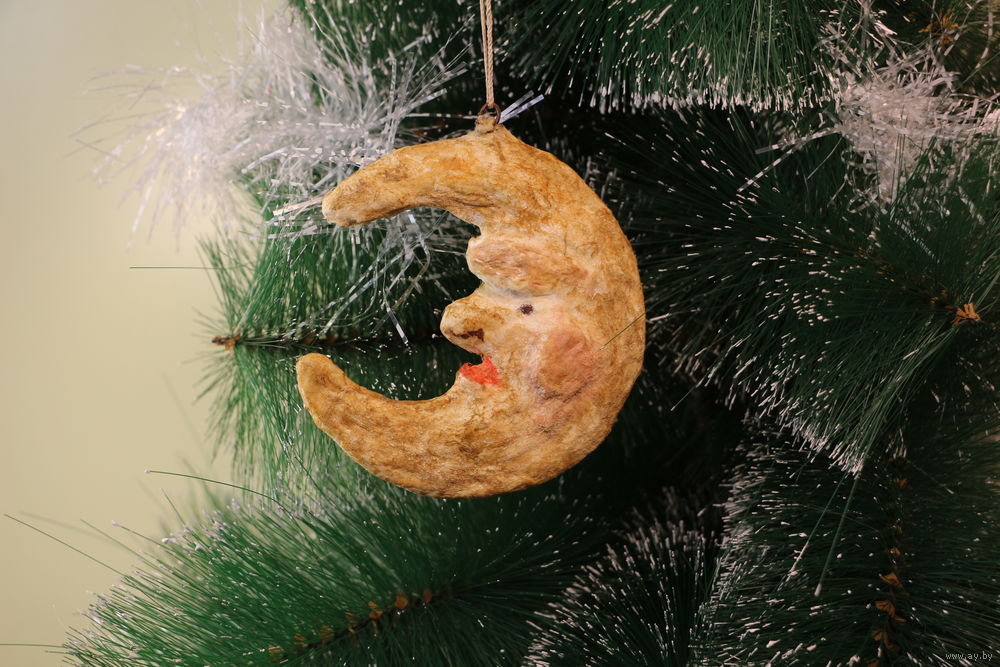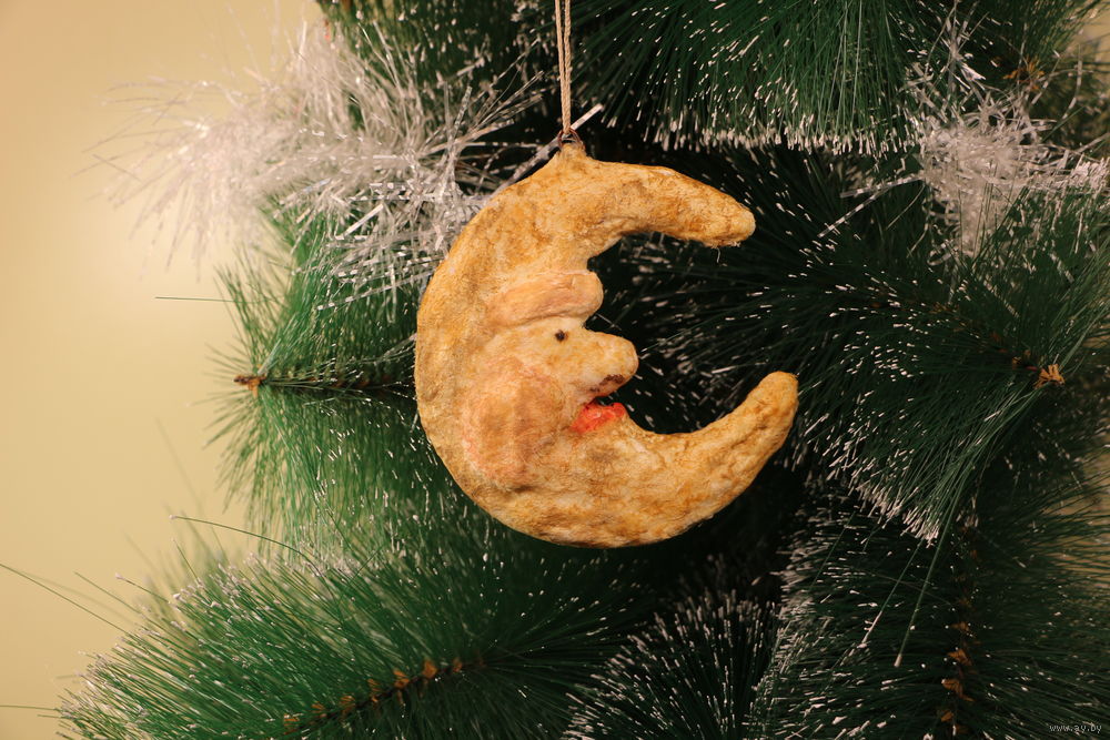 Ёлочная игрушка папье-маше, "Месяц".