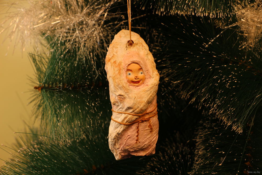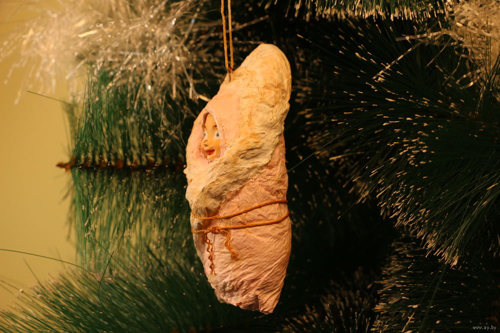 Ёлочная игрушка папье-маше, "Ребёнок в конверте".