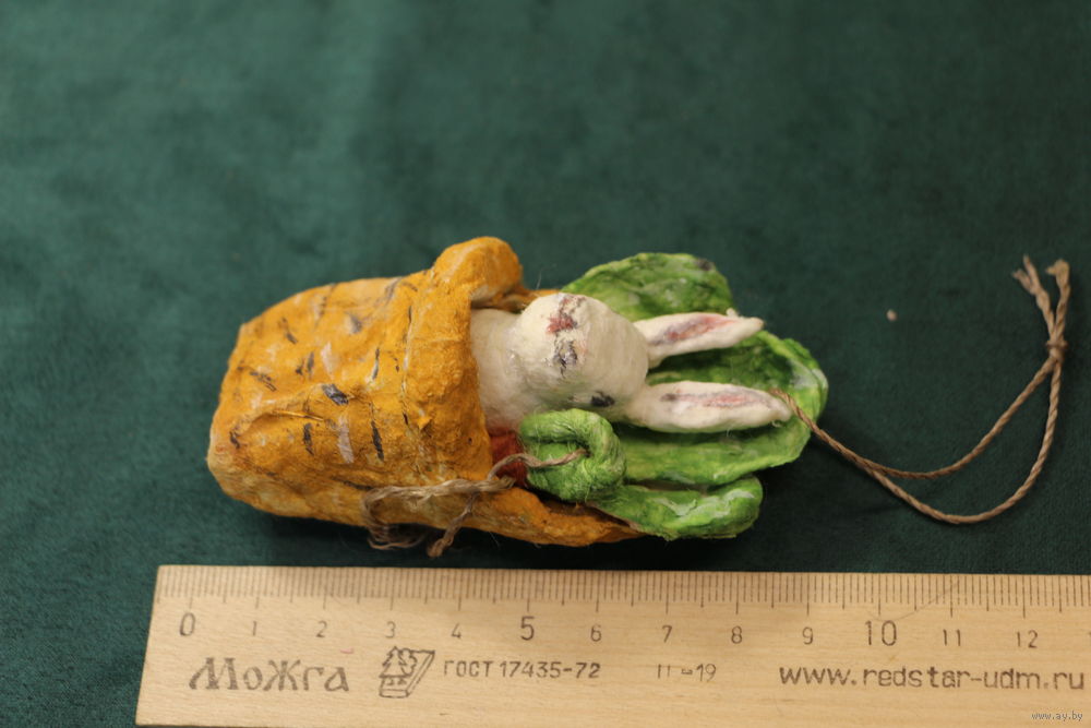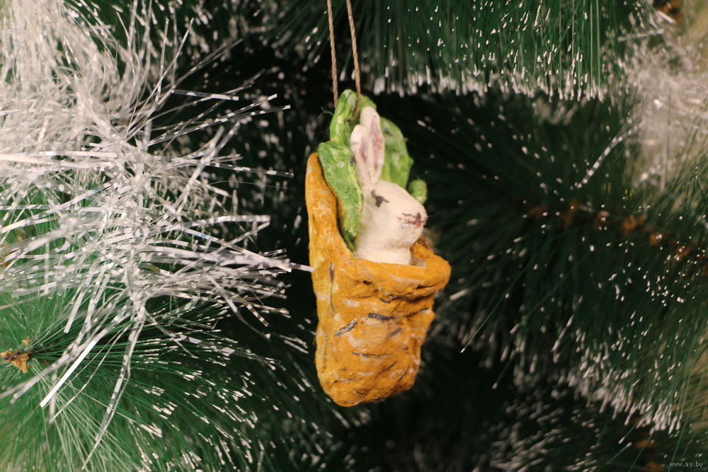 Ёлочная игрушка папье-маше, "Зайчик в конверте".