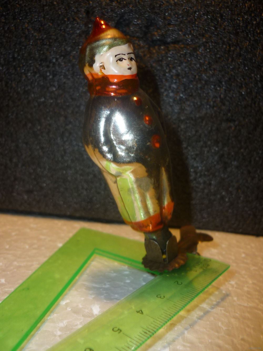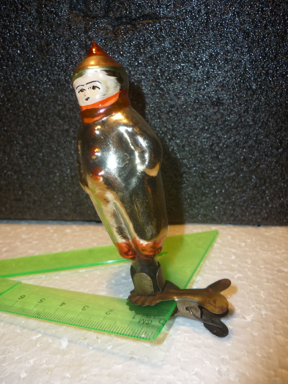 Ёлочная игрушка-прищепка МАЛЬЧИК в костюме клоуна. СССР. Амальгама
