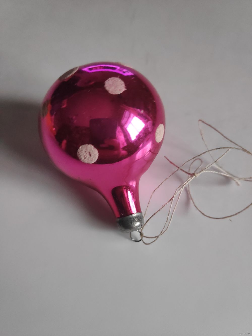 Ёлочная игрушка Розовый шар с белыми горошинами.