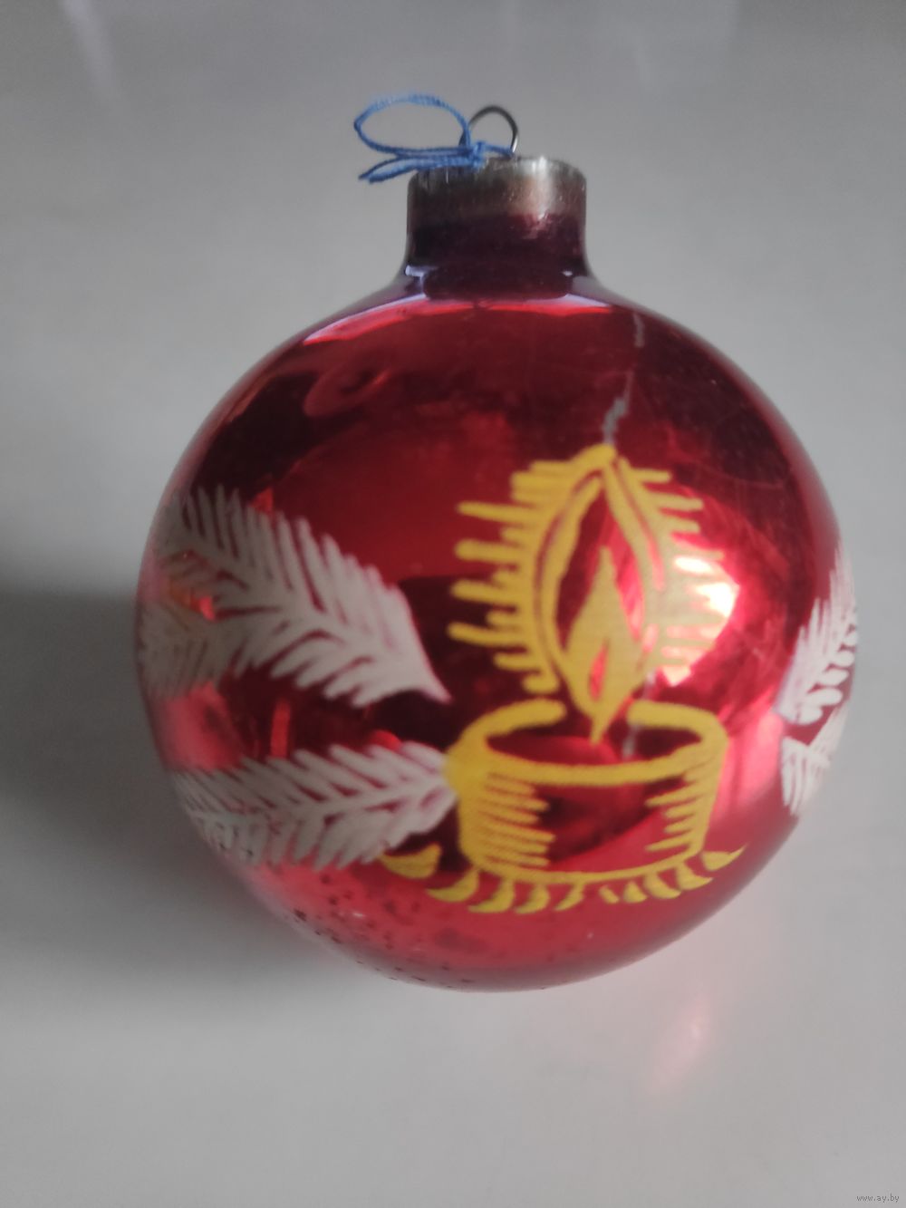 Ёлочная игрушка Шар с изображением свечи. ГДР.
