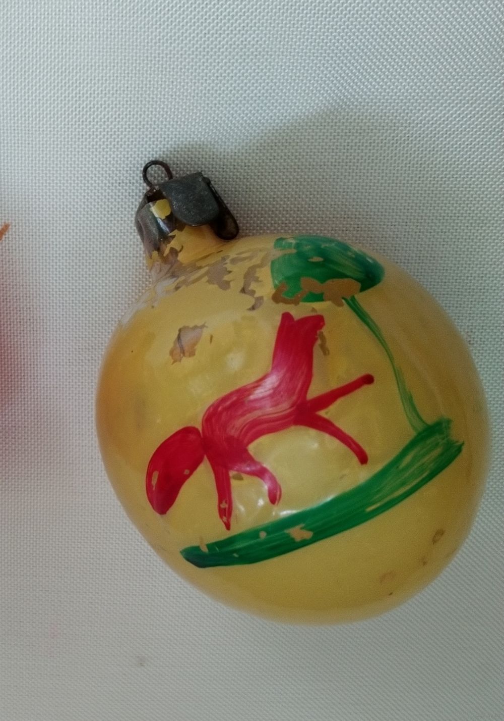 Ёлочная игрушка Шар с лисой. Состояние на фото. Старинная. Могу выслать по почте или Европочтой