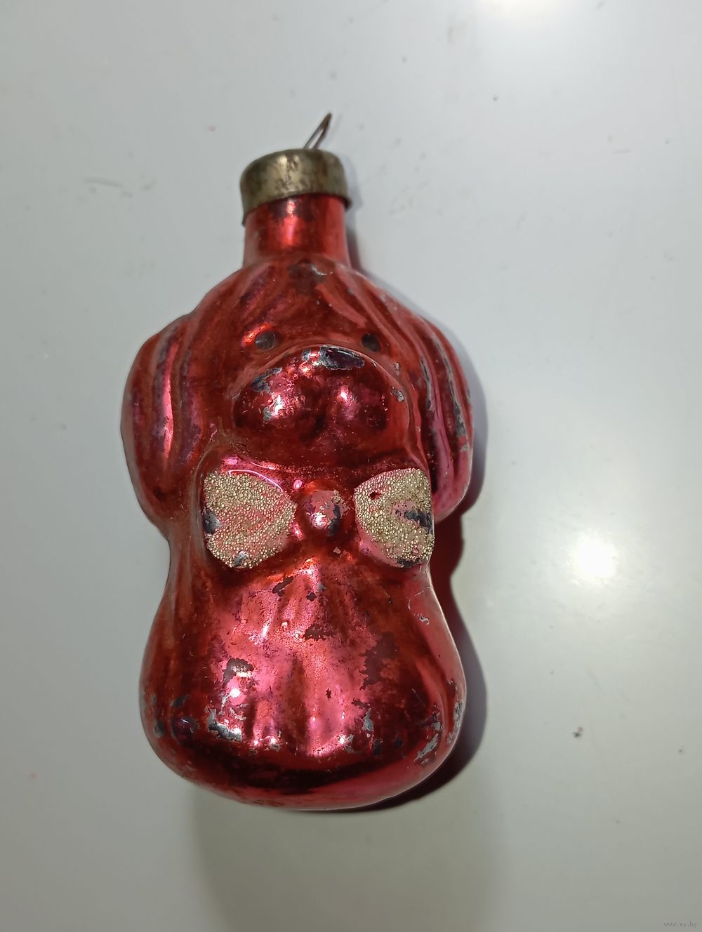 Ёлочная игрушка - Собачка . СССР . Стекло .