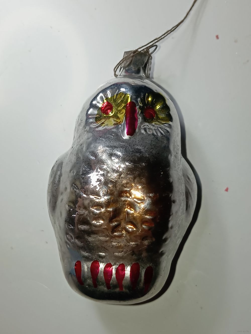 Ёлочная игрушка - Сова . СССР . Стекло .