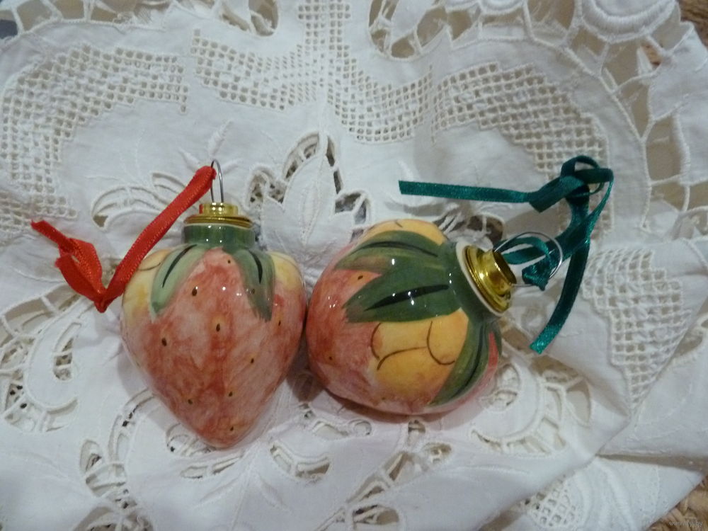 Новогодние винтажные игрушки "Клубнички" выполнены из высококачественного фарфора.