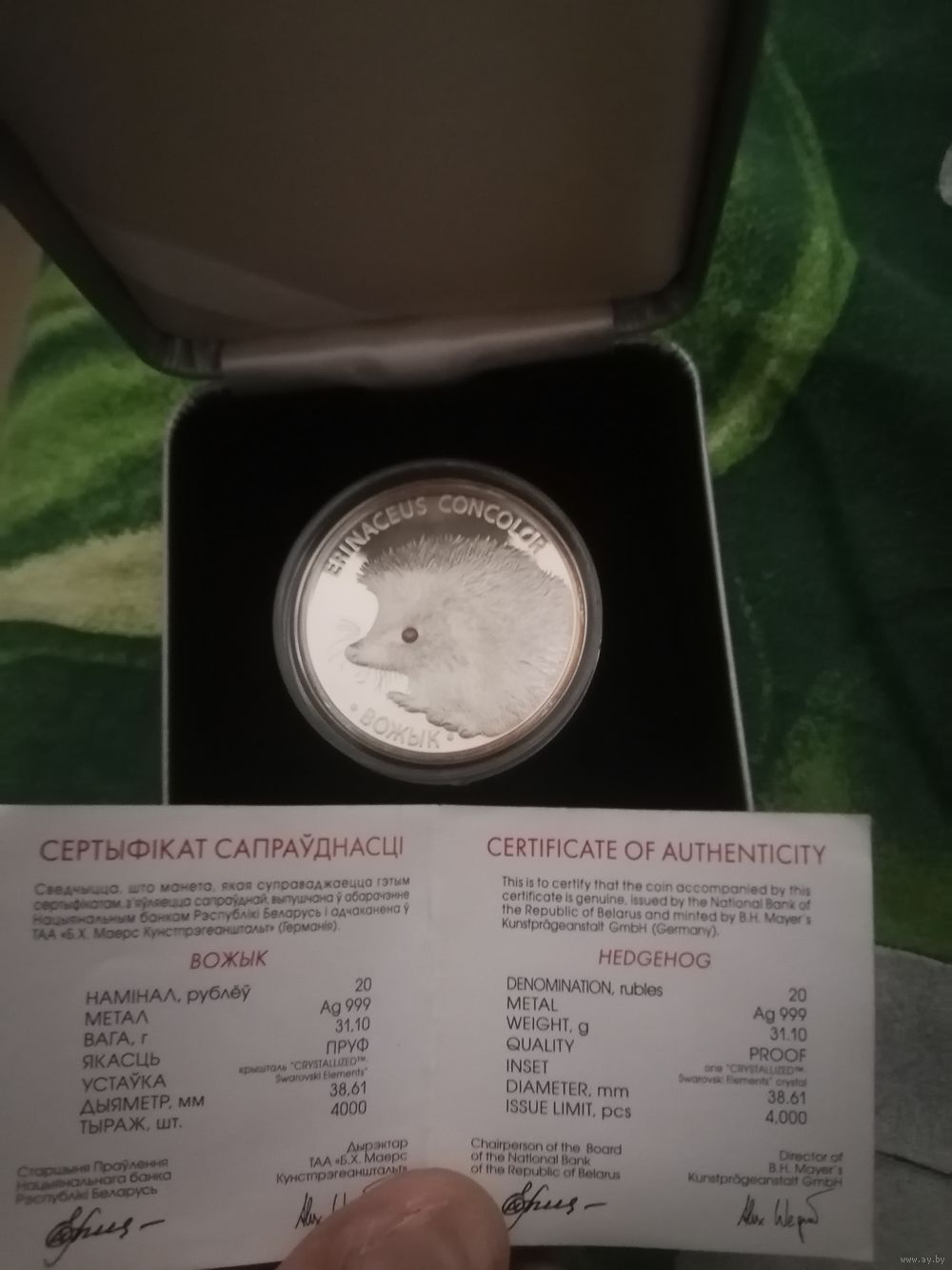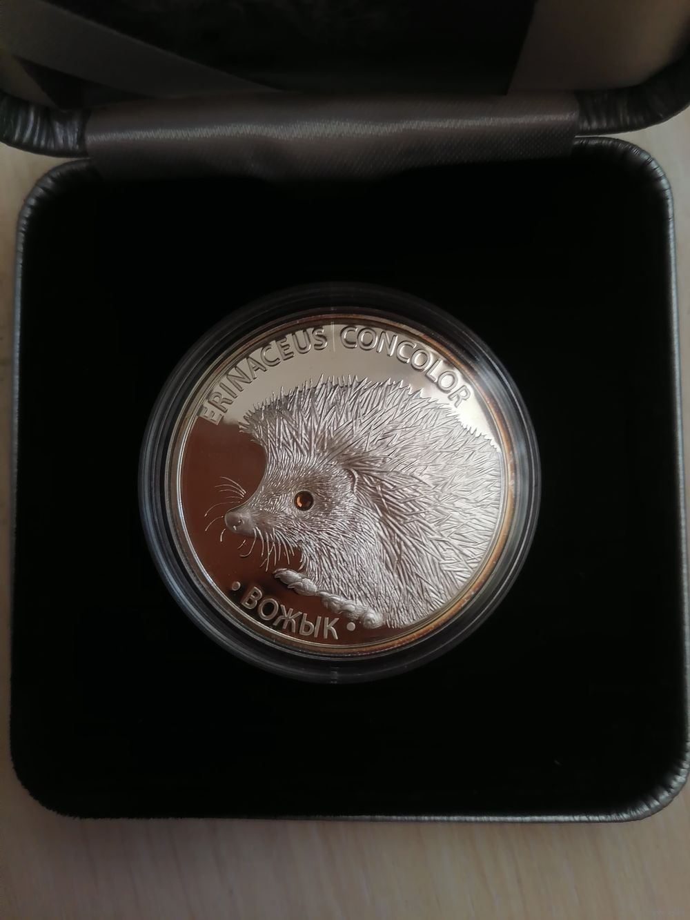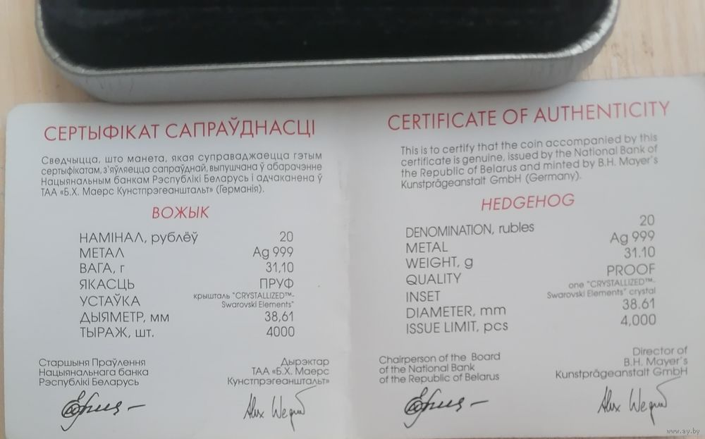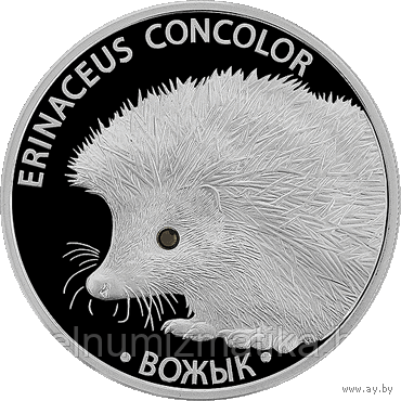 На реверсе изображён ёжик с глазками из кристаллов Сваровски.