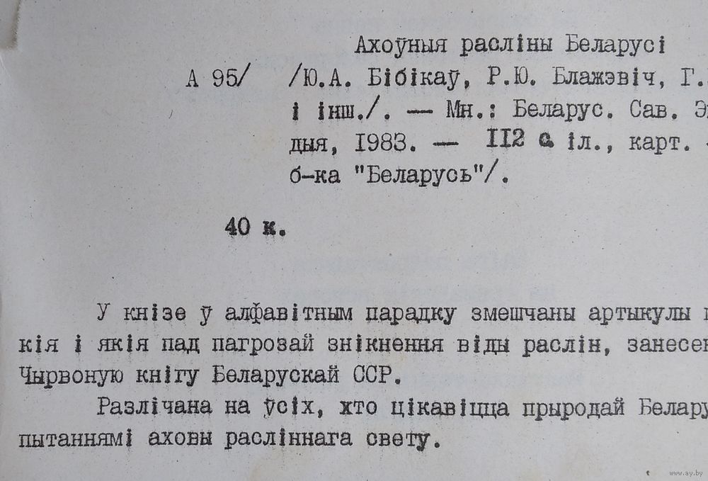 Ю. А. Бібікаў і інш. Ахоўныя расліны Беларусі. (Энцыклапедычная бібліятэчка "Беларусь"). Мінск : Беларуская Савецкая Энцыклапедыя, 1983 г. 109 с. Мяккая вокладка.
