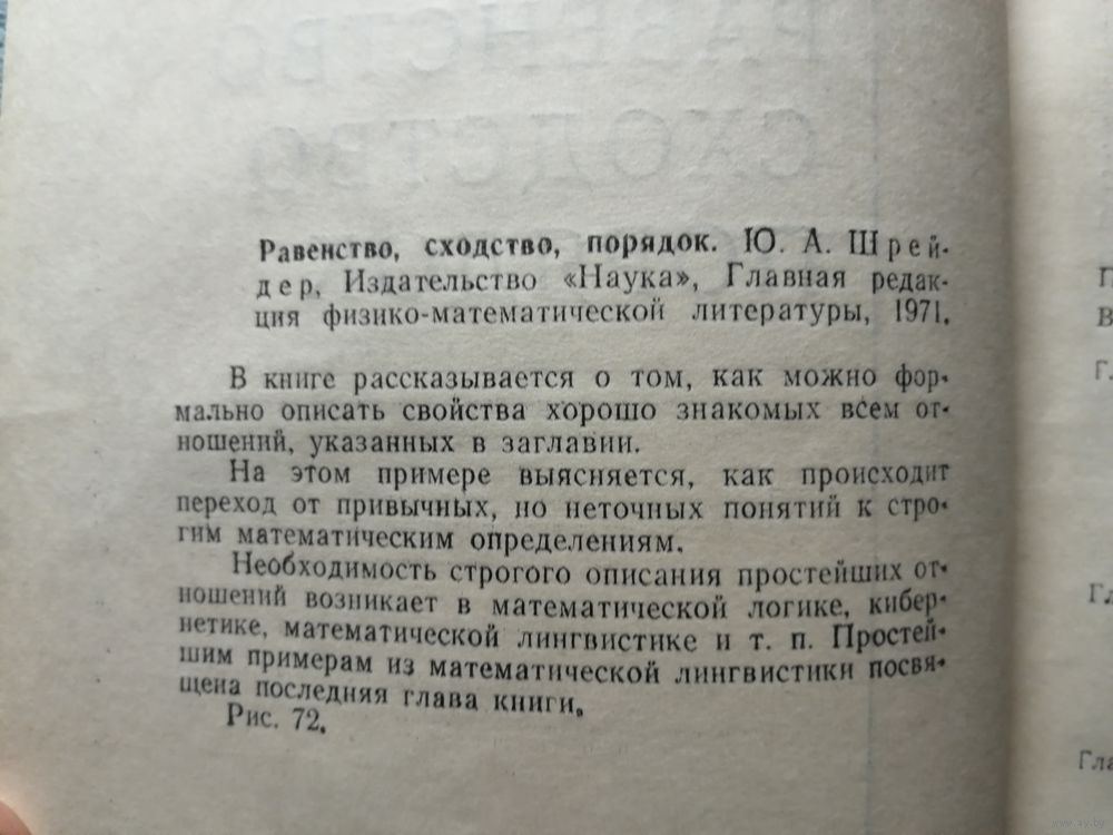 В книге рассказывается о том, как можно формально описать свойства хорошо знакомых всем отношений, указанных в заглавии. На этом примере выясняется, как происходит переход от привычных, но неточных понятий к строгим математическим определениям. Необходимость строгого описания простейших отношений возникает в математической логике, кибернетике, математической лингвистике и т. п. Простейшим примерам из математической лингвистики посвящена последняя глава книги.