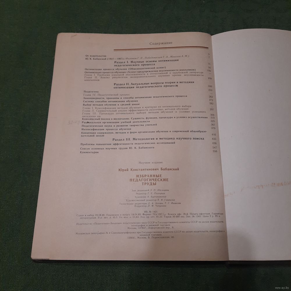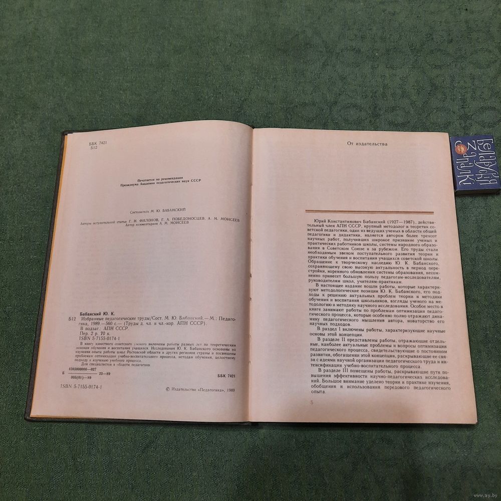 Ю.К.Бабанский Избранные педагогические труды. Москва 1989г.