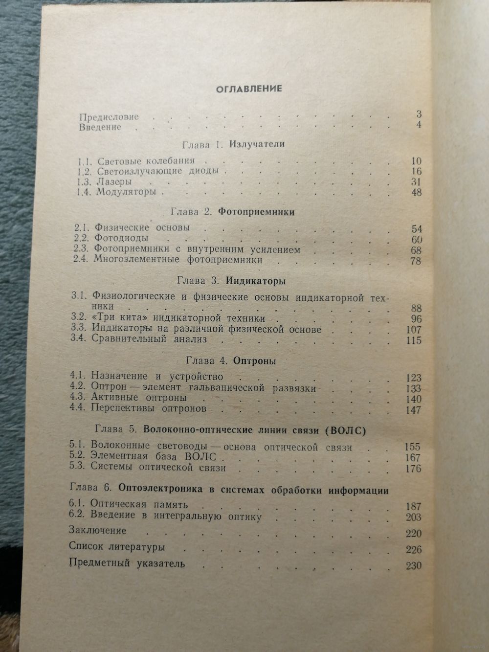 Дан очерк оптоэлектроники как формирующегося научно-технического направления. Рассмотрены физика, устройство и основные параметры генераторов и приемников электромагнитных волн оптического диапазона, элемента управления световым лучом. Описаны основные разновидности индикаторных приборов, оптронов, многоэлементных фотоприемников, с самосканированием, оптоэлектронных преобразователей. Обсуждаются перспективы важнейших оптоэлектронных систем.