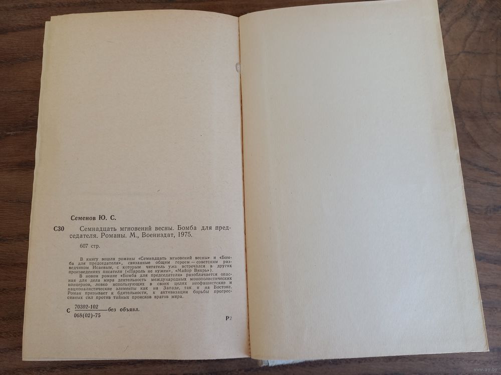 Ю. Семенов "Бомба для председателя", 1975 год, Москва, Воениздат, тираж 100 000 экземпляров, из серии "Военные приключения".