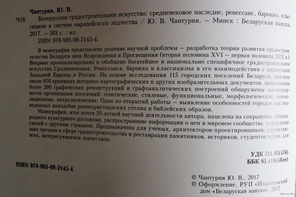 В монографии представлено решение научной проблемы – разработка теории развития градостроительства Беларуси эпох Возрождения и Просвещения (вторая половина XVI – первая половина XIX в.). Впервые проанализировано и обобщено богатейшее и национально специфичное градостроительное искусство Средневековья, Ренессанса, барокко и классицизма в его взаимодействии с зодчеством Западной Европы и России. На основе исследования 115 городских поселений Беларуси, анализа около 650 архивных историко-картографических и других изобразительных документов, выполнения более 200 графических реконструкций и графоаналитических построений обнаружены закономерности организации поселений: генетические, стилевые, функциональные, морфологические, композиционные, метрологические. Одно из открытий работы – выявление особенностей городов как возведенных наподобие раннехристианских столиц и библейских образов.