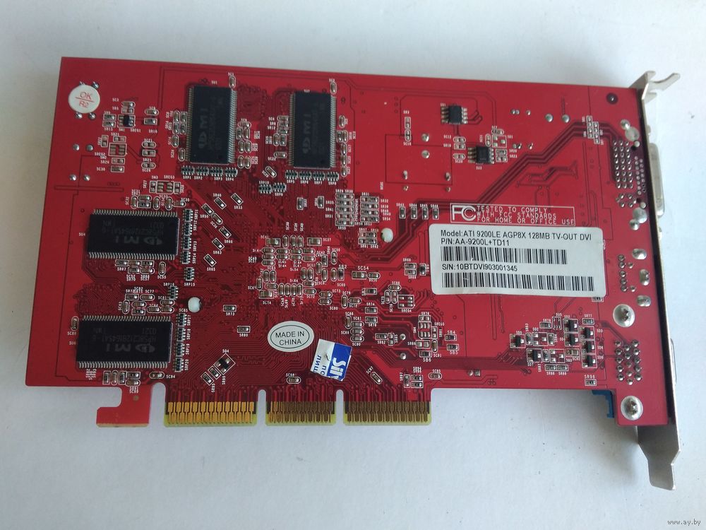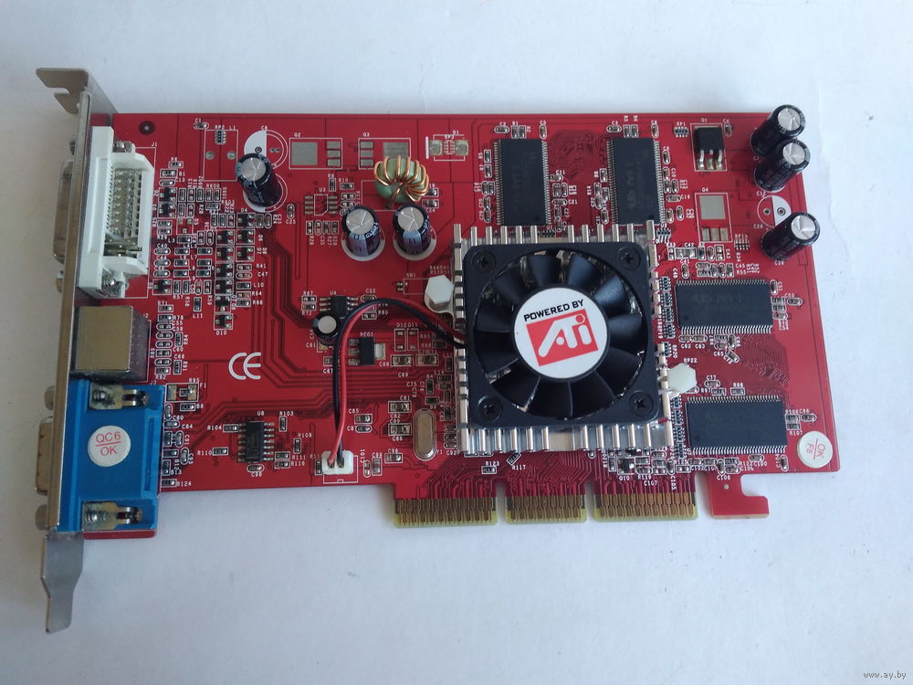 Yuan Radeon 9200 LE. Полноценный, 128 бит, медленная память, но хорошо гонится