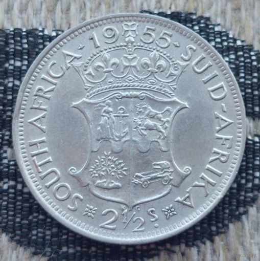 ЮАР 2 1/2 шиллинга 1955 года. Герб. Королева Елизавета. Серебро. Сторгуй за свою цену, предложи обмен! S30