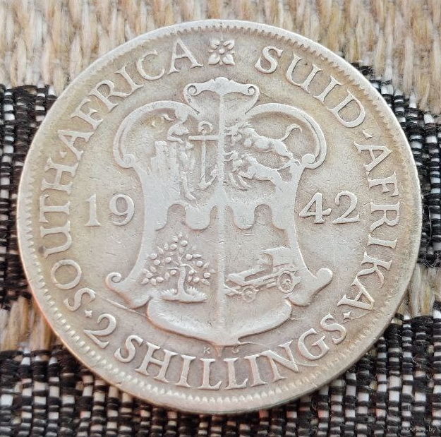 ЮАР 2 шиллинга 1942 года. Король Георг VI. Герб. II Мировая война. Серебро. Сторгуй за свою цену, предложи обмен! Y