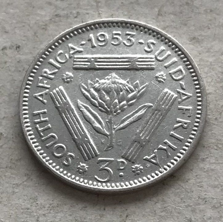 ЮАР 3 пенса 1953 Елизавета II - первый год чекана!