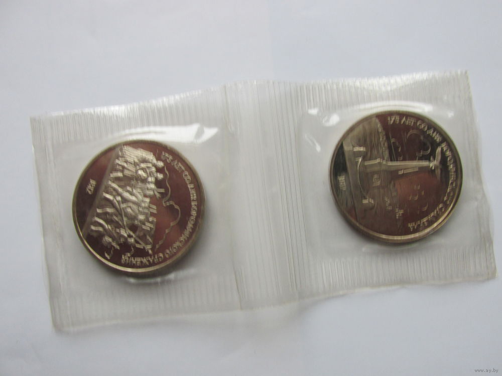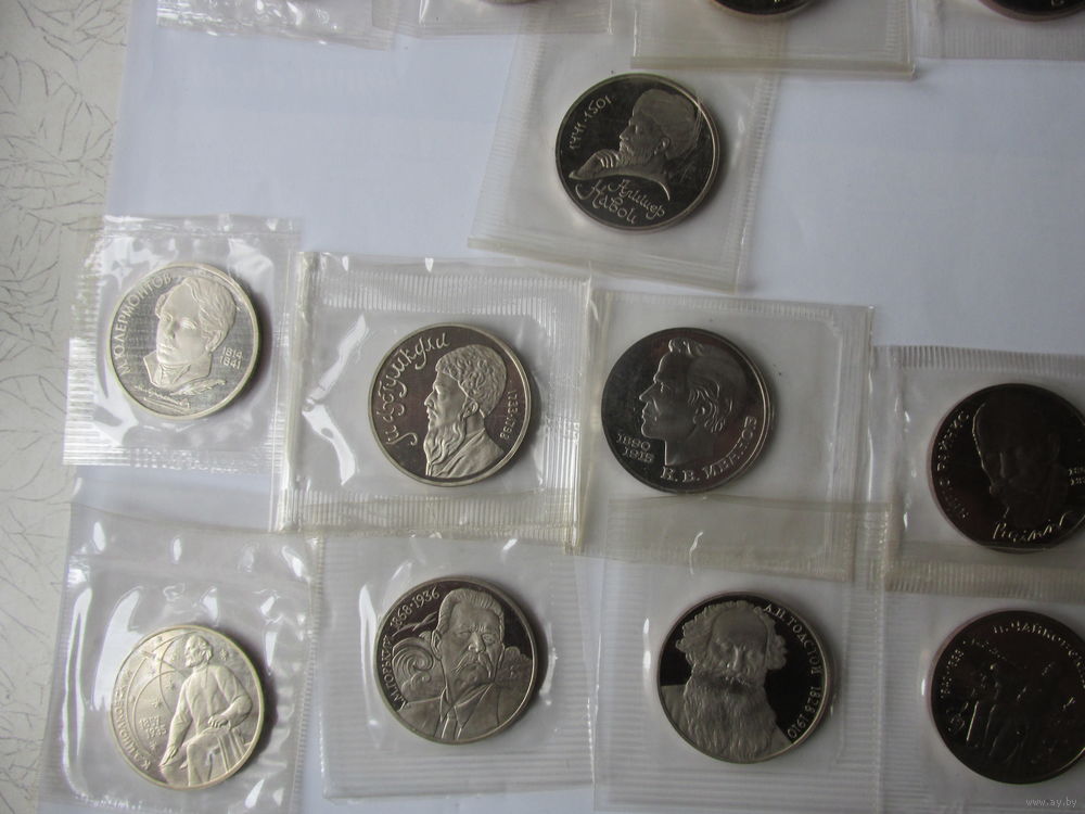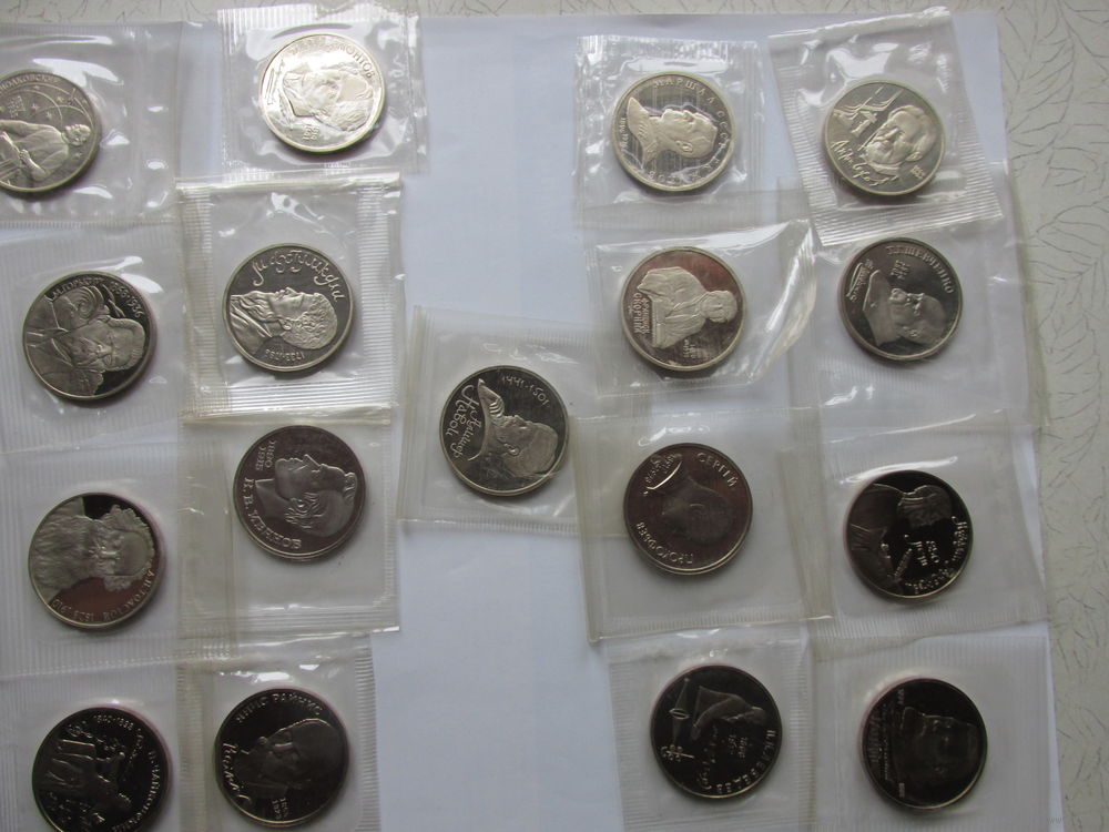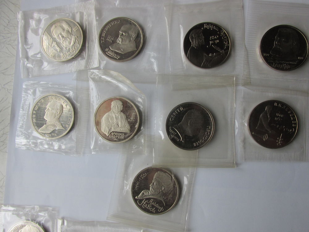 Однорублевые: Олимпиада-6штук, Бородино-2штуки, Циолковский, Горький, Толстой, Шевченко, Мусоргский, Лермонтов, Чехов, Чайковский, Жуков, Скорина, Райнис, Навои, Лебедев, Махтумкули, Низами, Иванов, Прокофьев. Трехрублевые: Победа под Москвой, Армения-землетрясение.