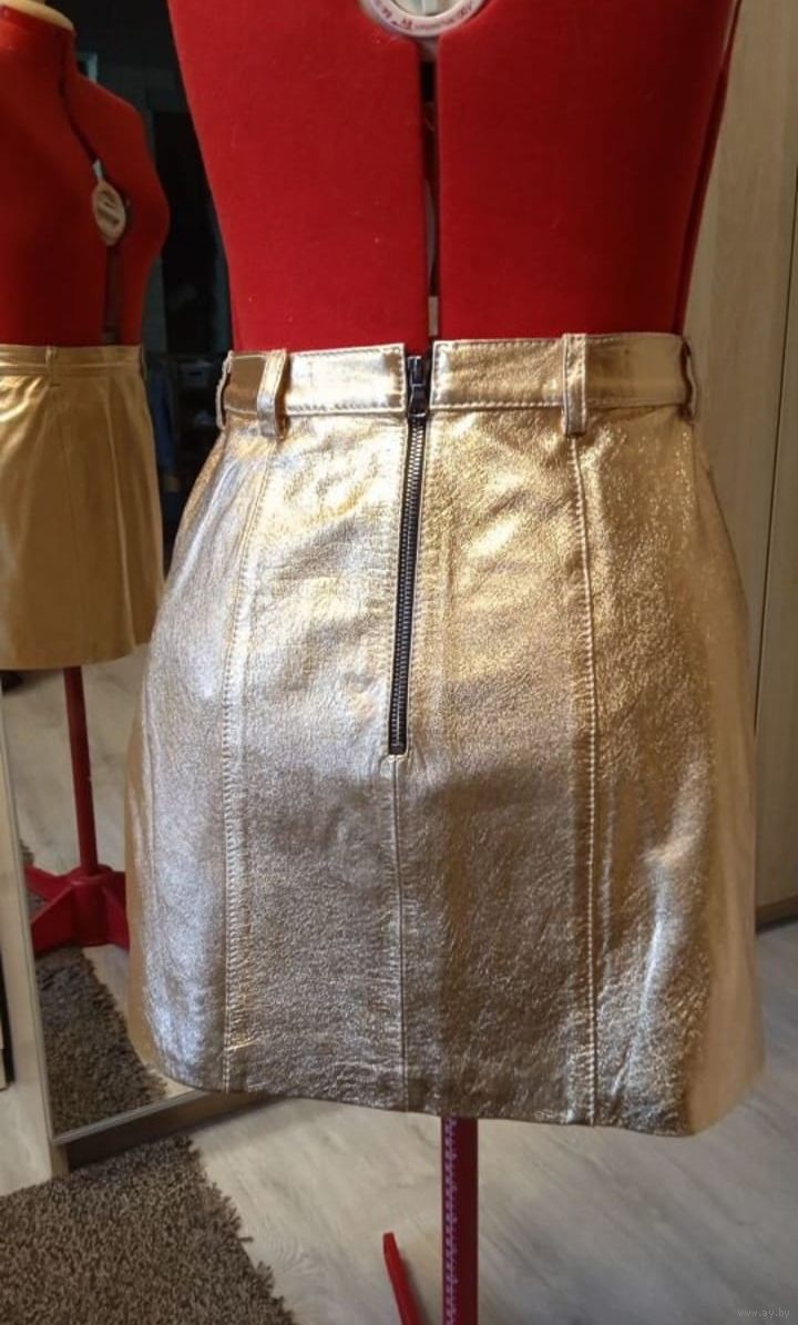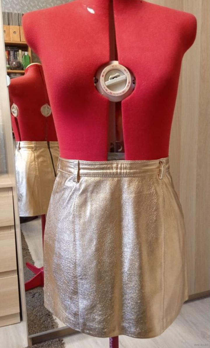 Юбка кожаная. Золотистая. Р/р: 46. Новая.