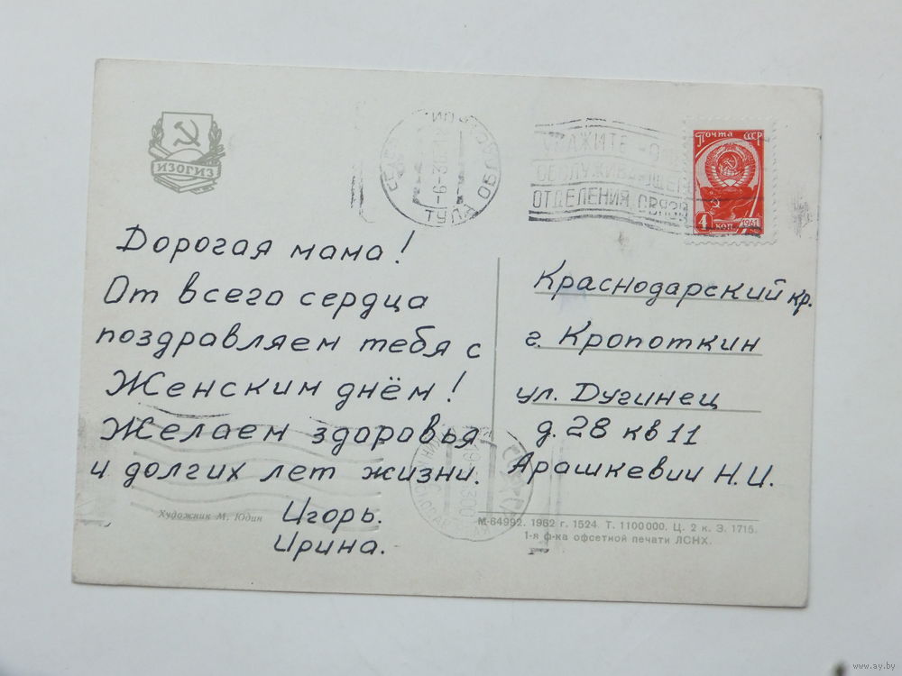 Юдин 8 марта 1962 10х15 см