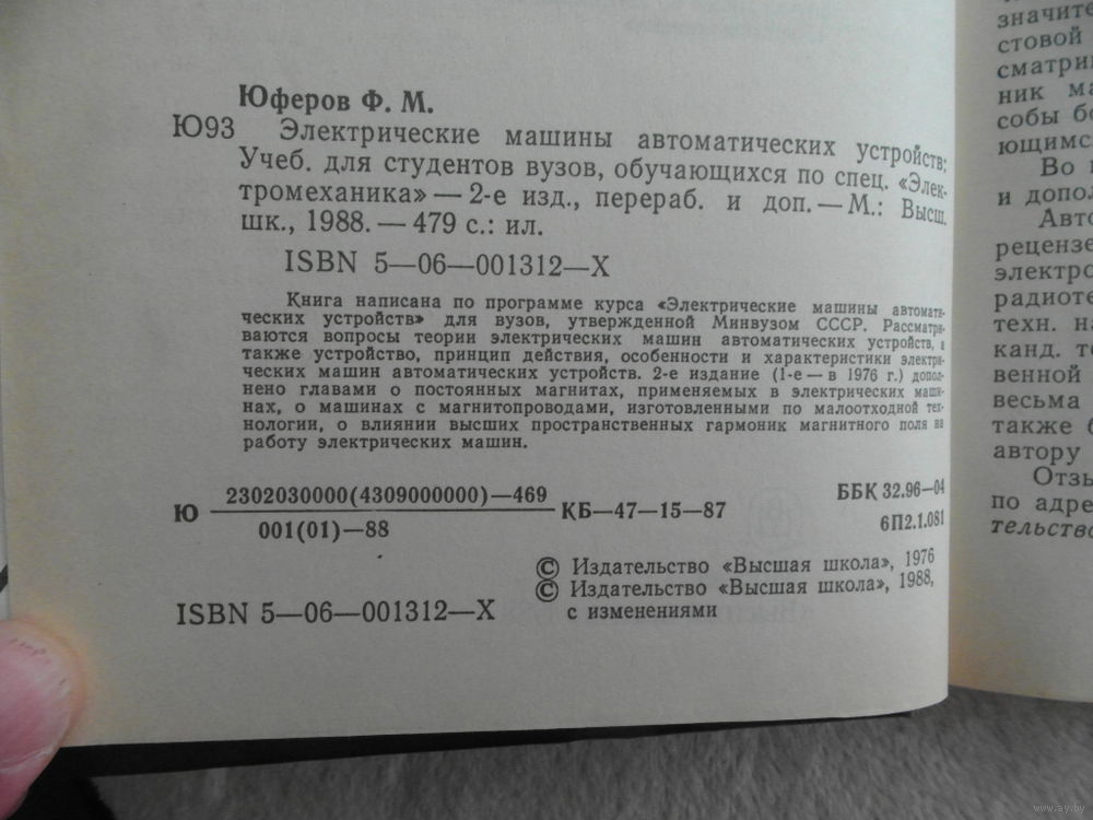 Книга написана по программе курса `Электрические машины автоматических устройств` для вузов, утвержденной Минвузом СССР. Рассматриваются вопросы теории электрических машин автоматических устройств, а также устройство, принцип действия, особенности и характеристики электрических машин автоматических устройств. 2-е издание дополнено главами о постоянных магнитах, применяемых в электрических машинах, о машинах с магнитопроводами, изготовленными по малоотходной технологии, о влиянии высших пространственных гармоник магнитного поля на работу электрических машин.